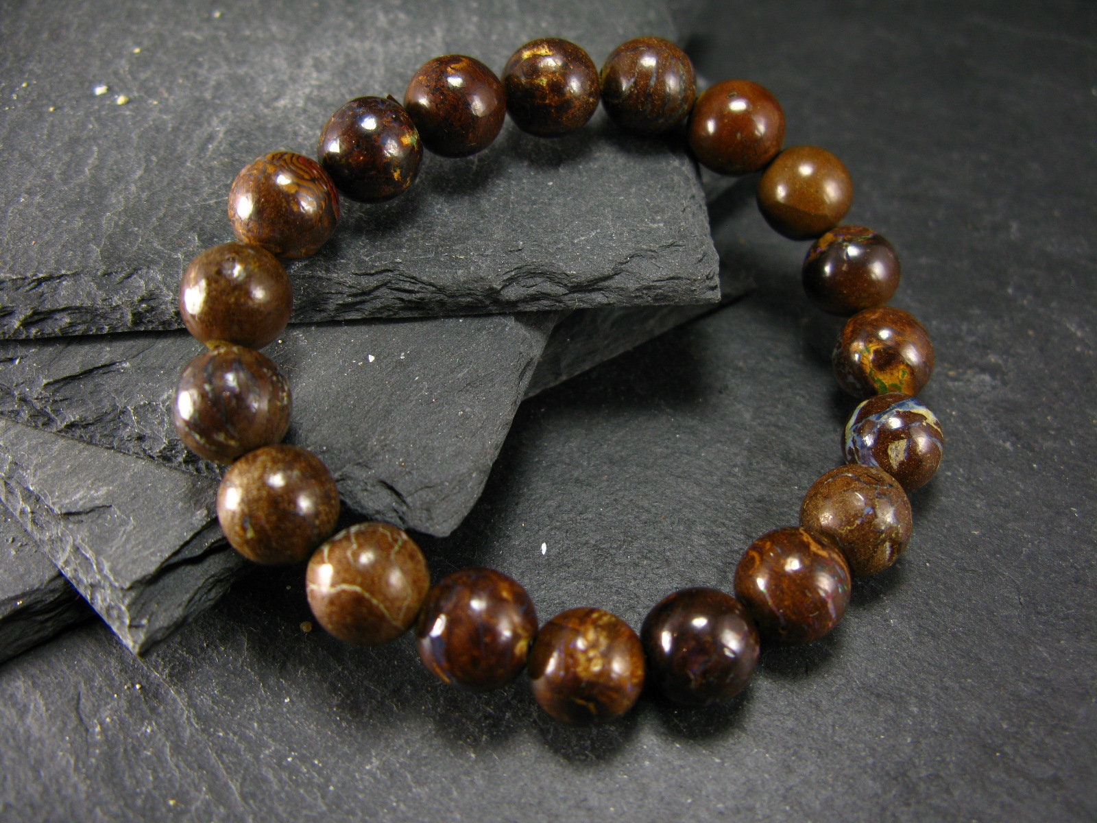 Boulder Opal Genuine Bracelet ~ 7 Inches ~ 10mm Round Beads