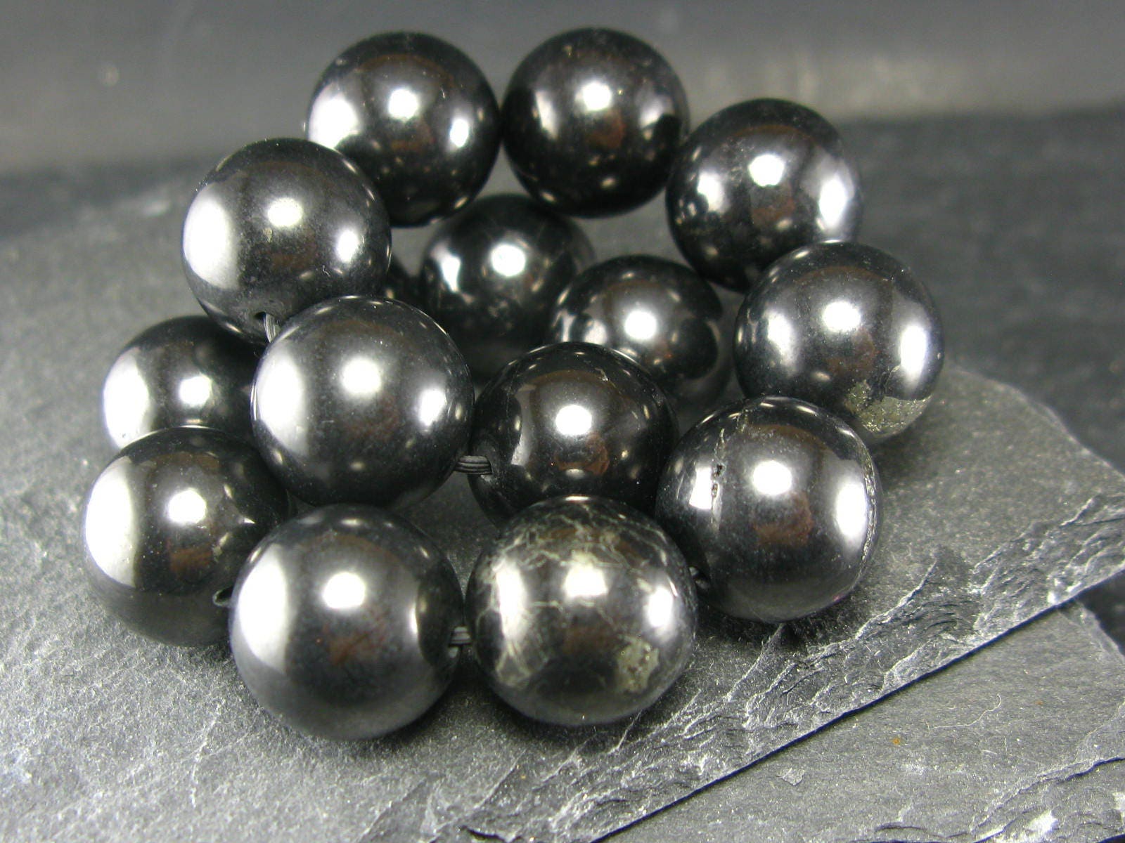 Shungite Genuine Bracelet ~ 7 Inches ~ 14mm Round Beads