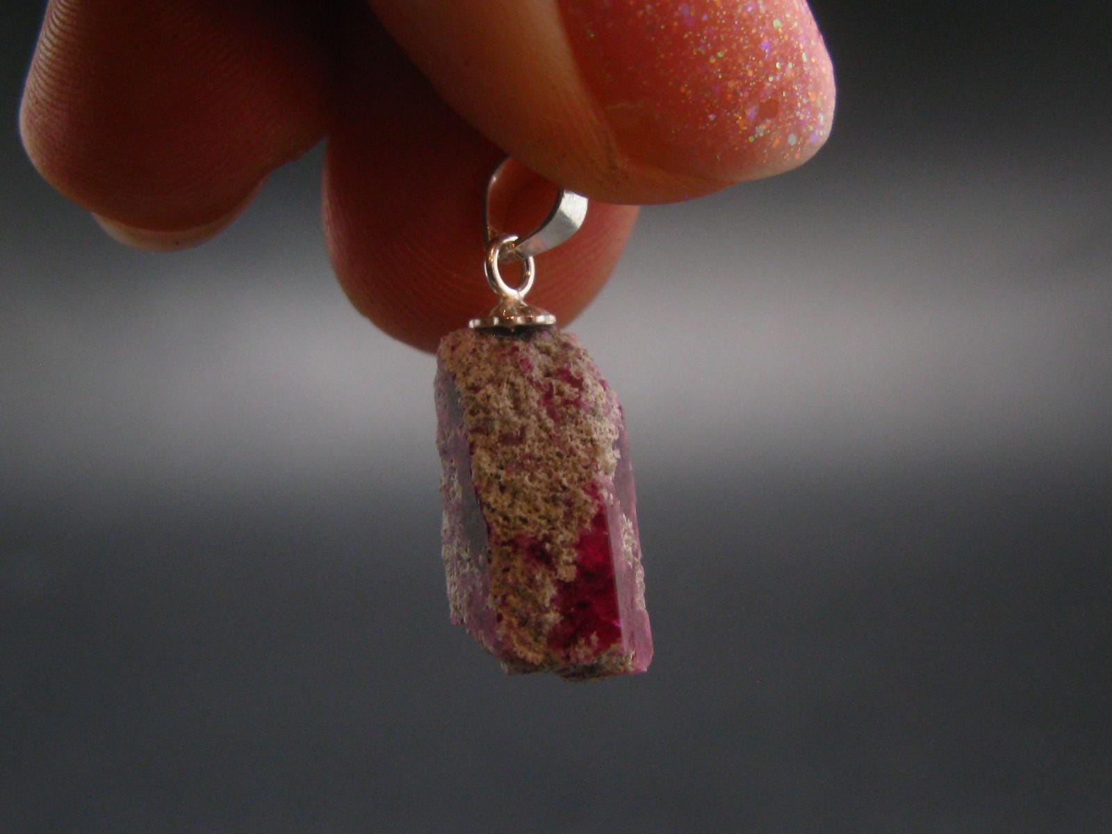 Jewel of Utah! Very rare terminated raspberry-red Bixbite (Red Emerald, Red Beryl, Scarlet emerald) silver pendant from its only locality in the world USA. Red beryl is one of 10 the world's rarest gemstones. According to the Utah Geological Survey, only one Red Beryl is found for ever 150,000 diamonds.