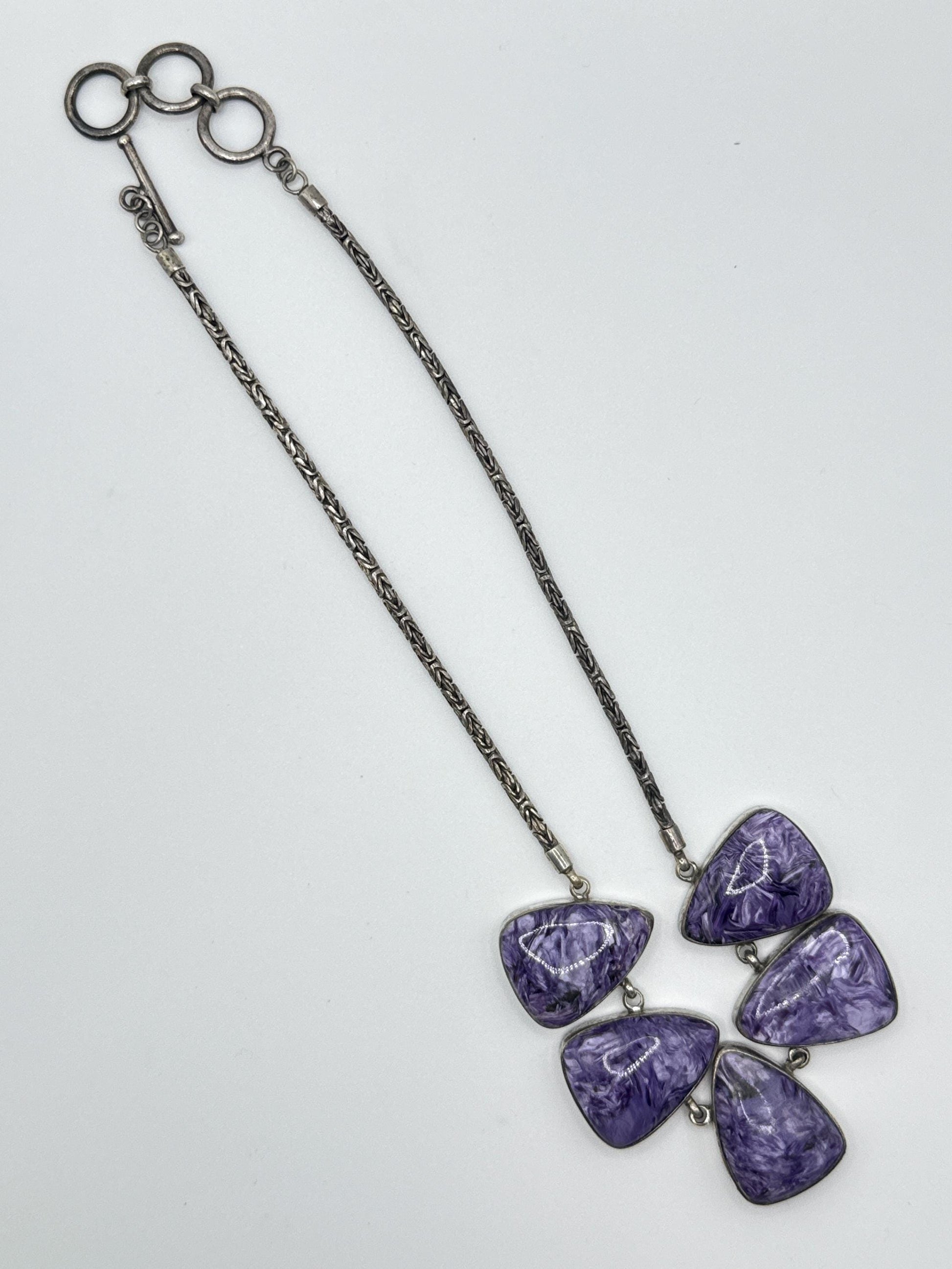 Charoite & Sterling Silver Geometric Necklace - 51.38 Grams