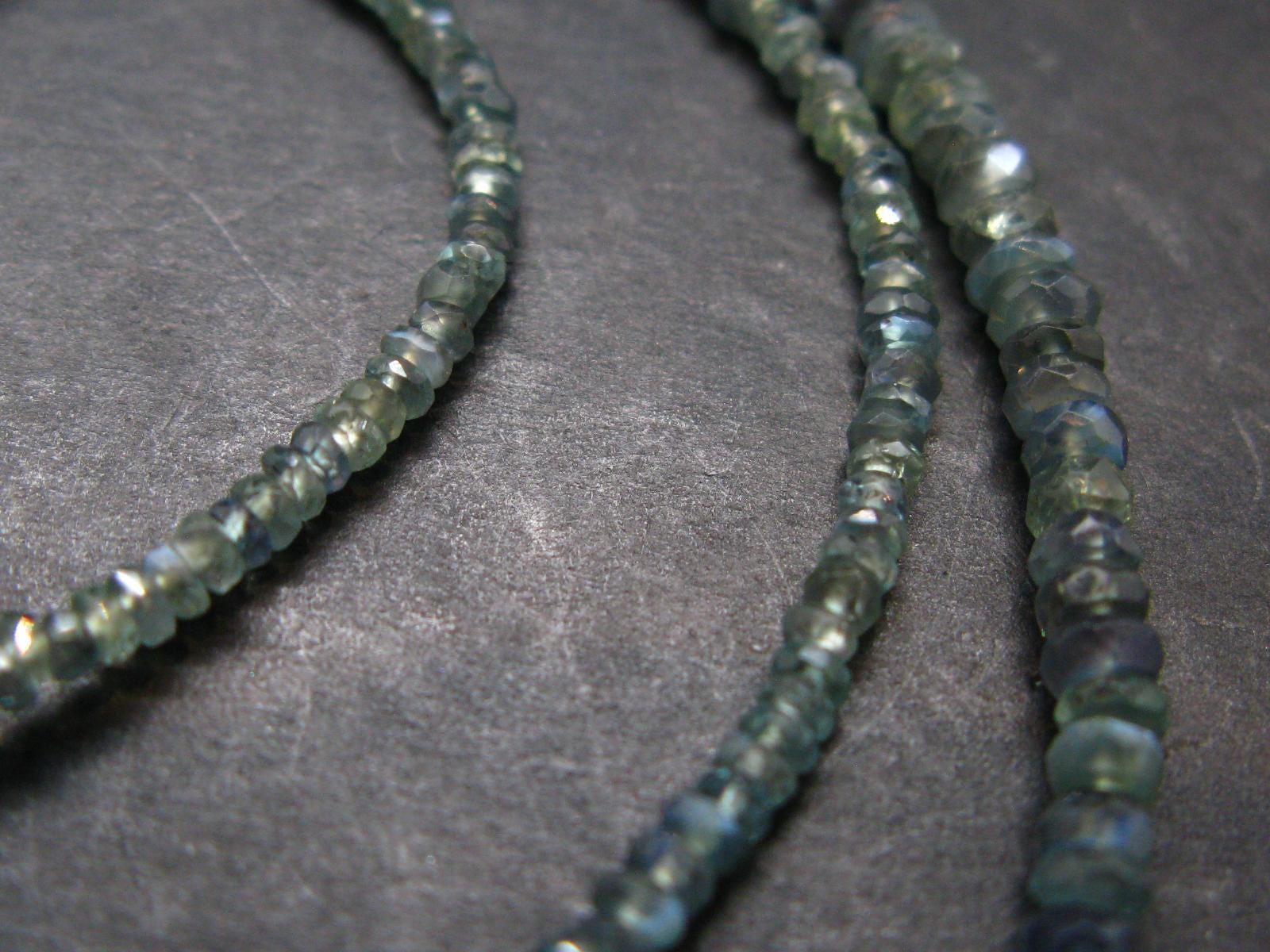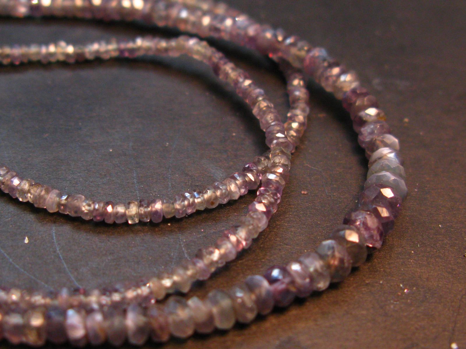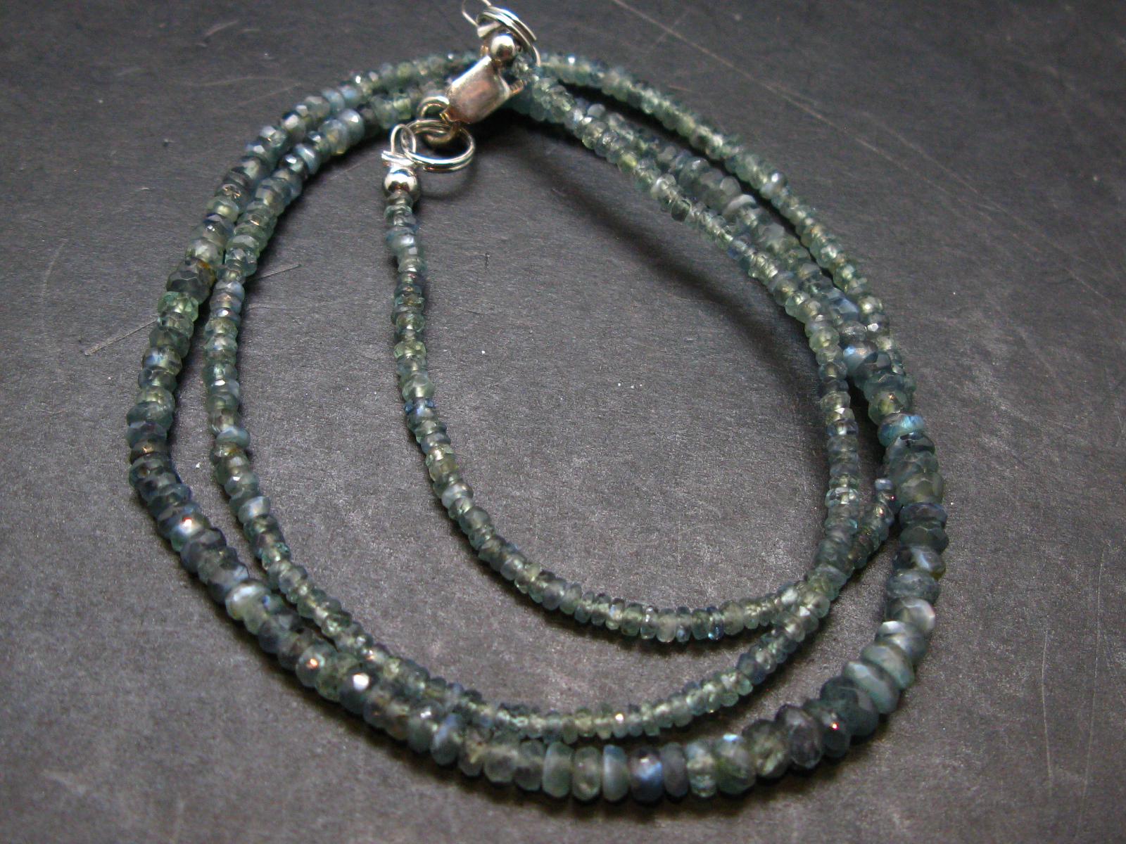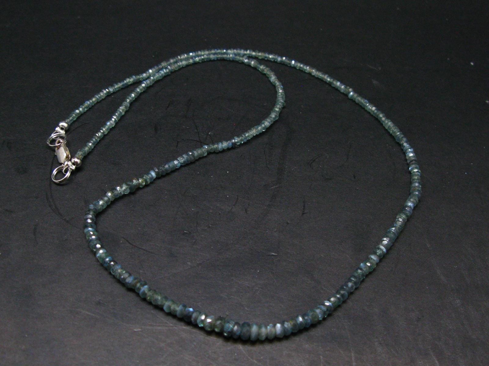 Description: A beautiful Alexandrite necklace with rondelle facetted beads measuring 2-4mm in diameter. They have a good color change.