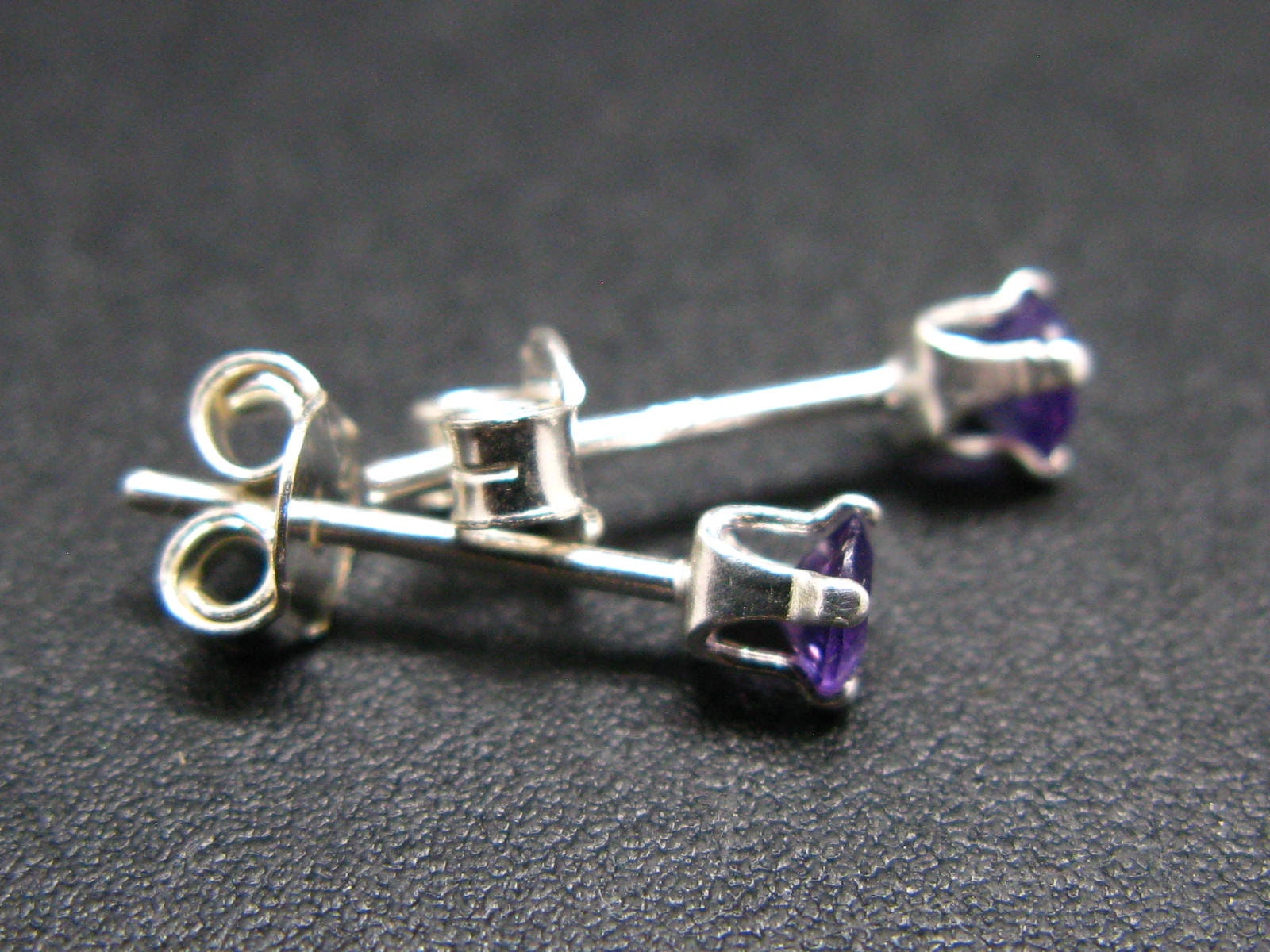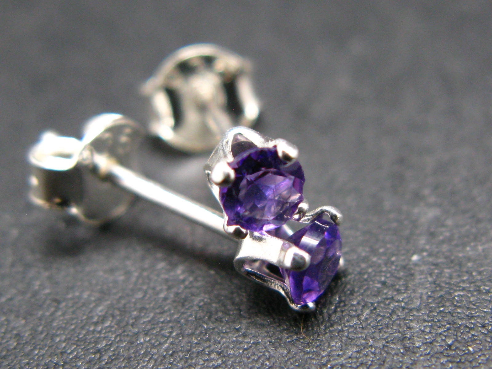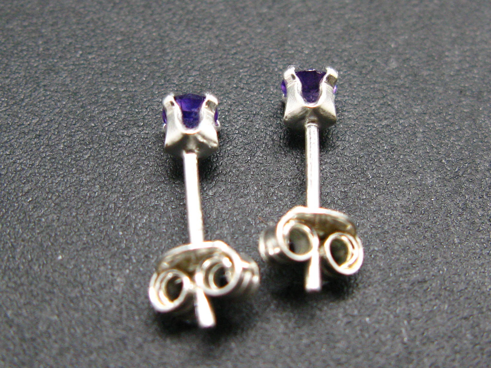 This is a very nice gem quality faceted round genuine rich purple color Amethyst stud earrings set in sterling silver.