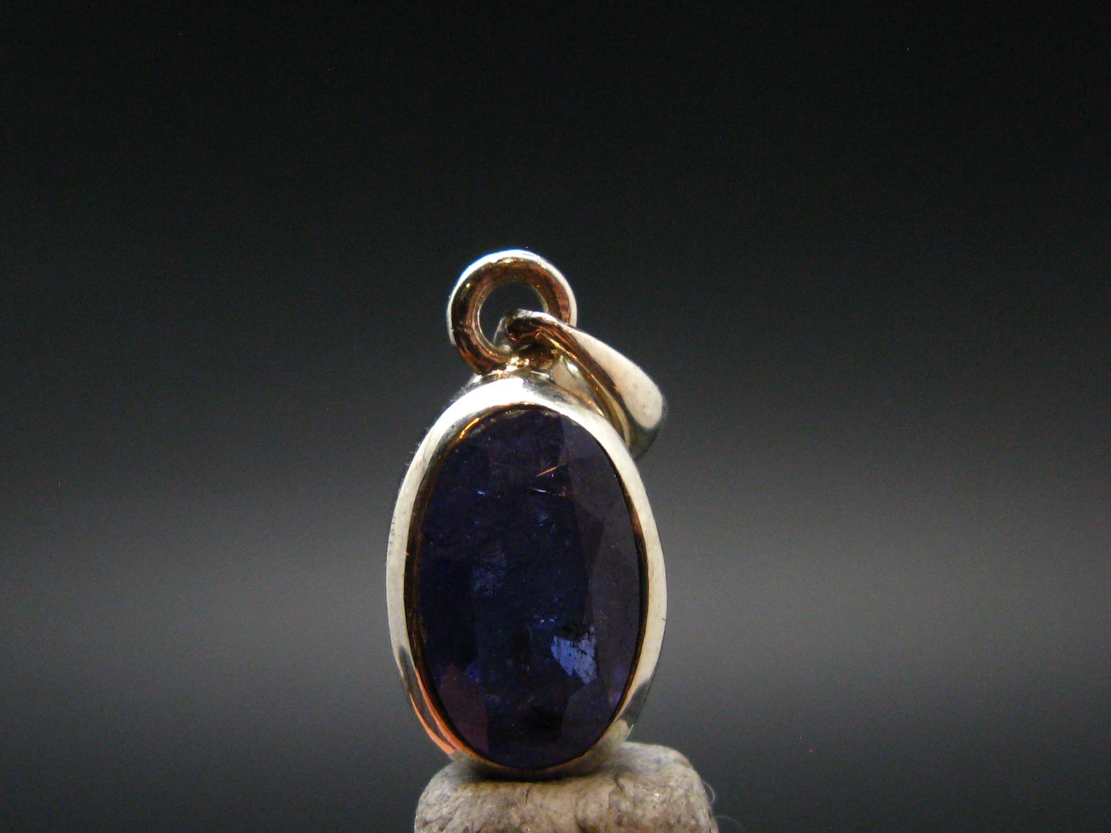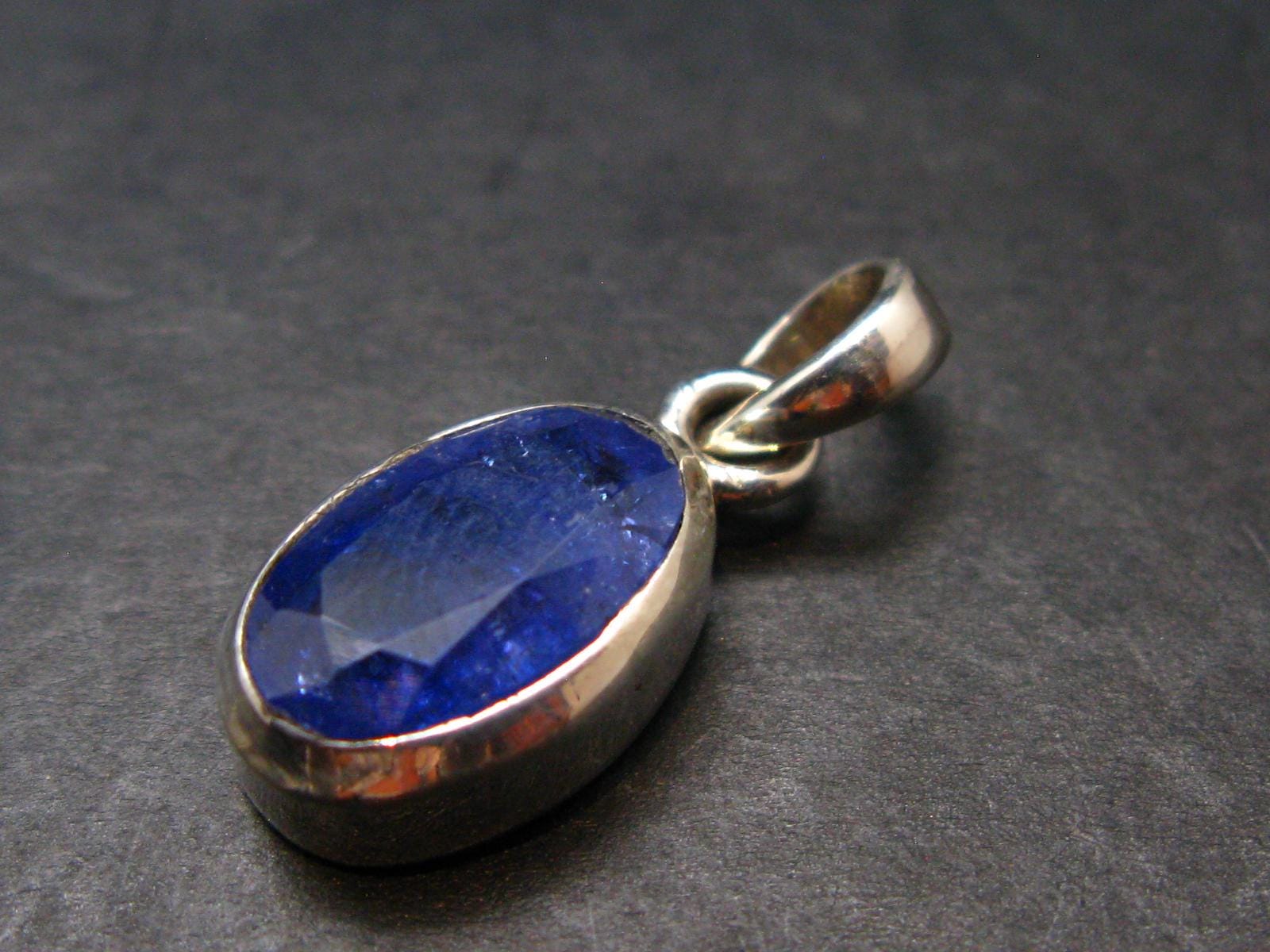 Faceted gemmy natural rich violet blue Tanzanite Zoisite pendant set in sterling silver.