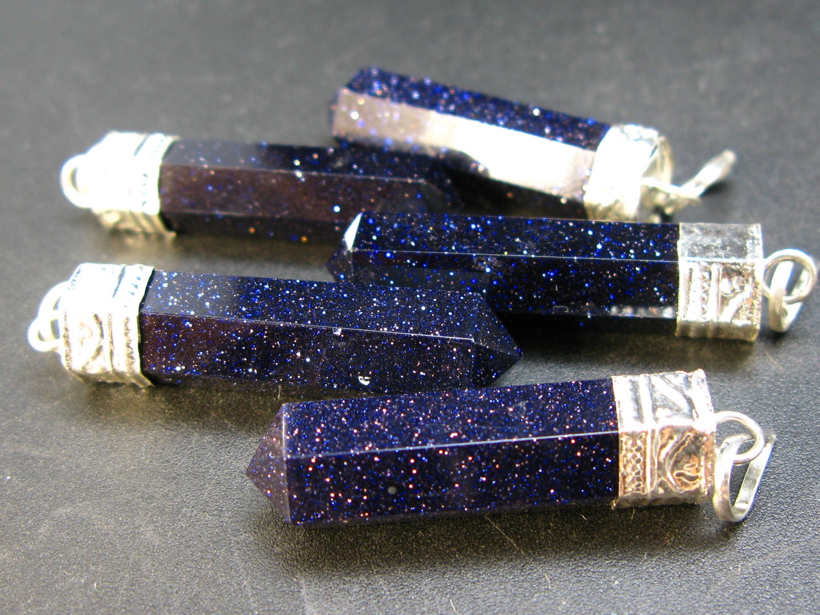 Lot of 5 Blue Goldstone Pencil Point Pendant - 1.8"