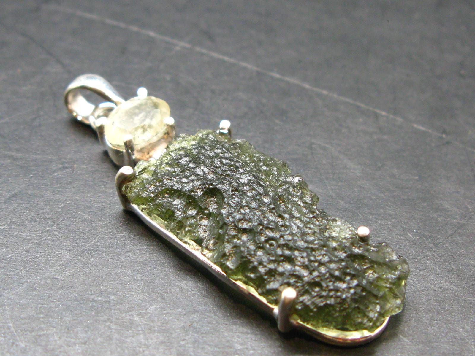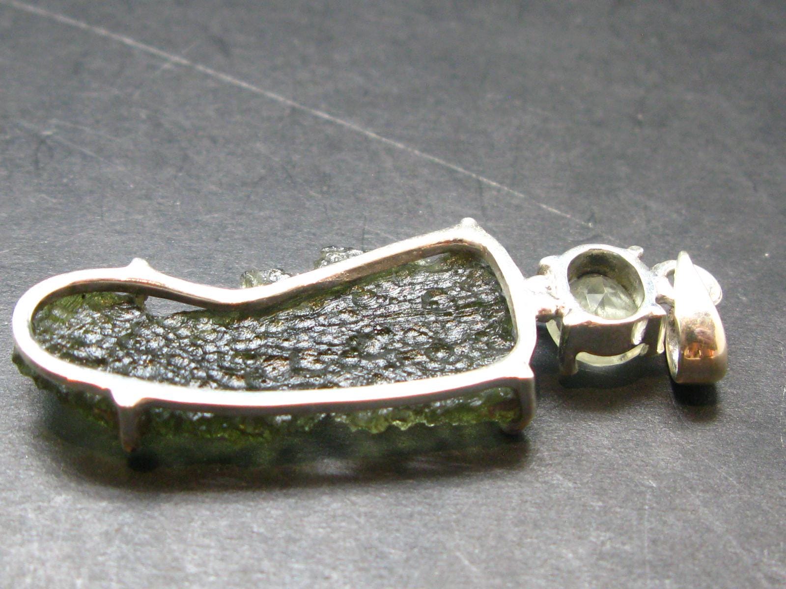 Size: 5.4 x 1.6 x 0.4 Centimeter with bail; Moldavite is 3.3 x 1.6 cm; Libyan Tektite is 0.8 x 0.7 cm