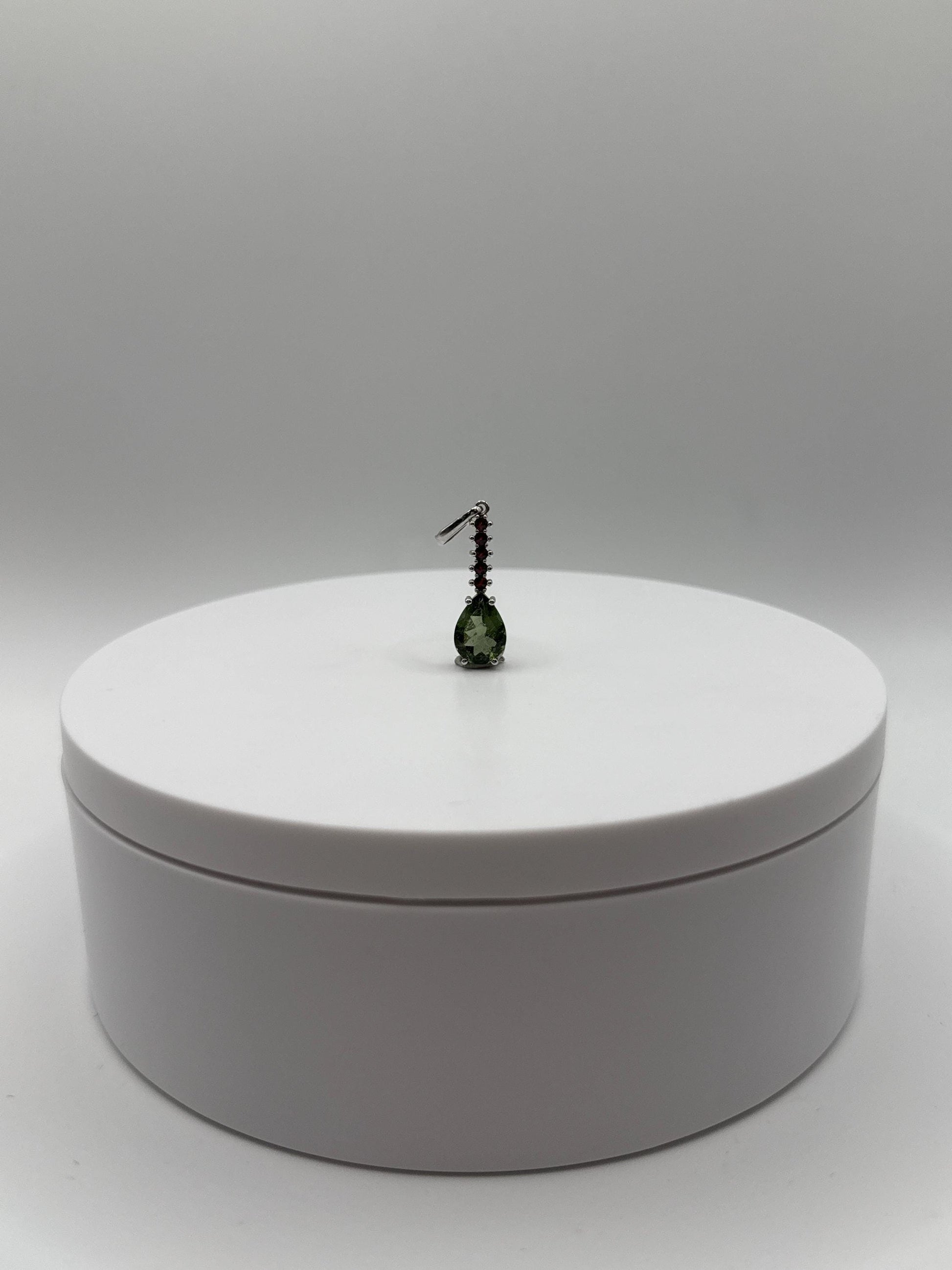 Moldavite Pear-Shaped Pendant with & Red Garnet Accents in Sterling Silver - 1.68 Grams
