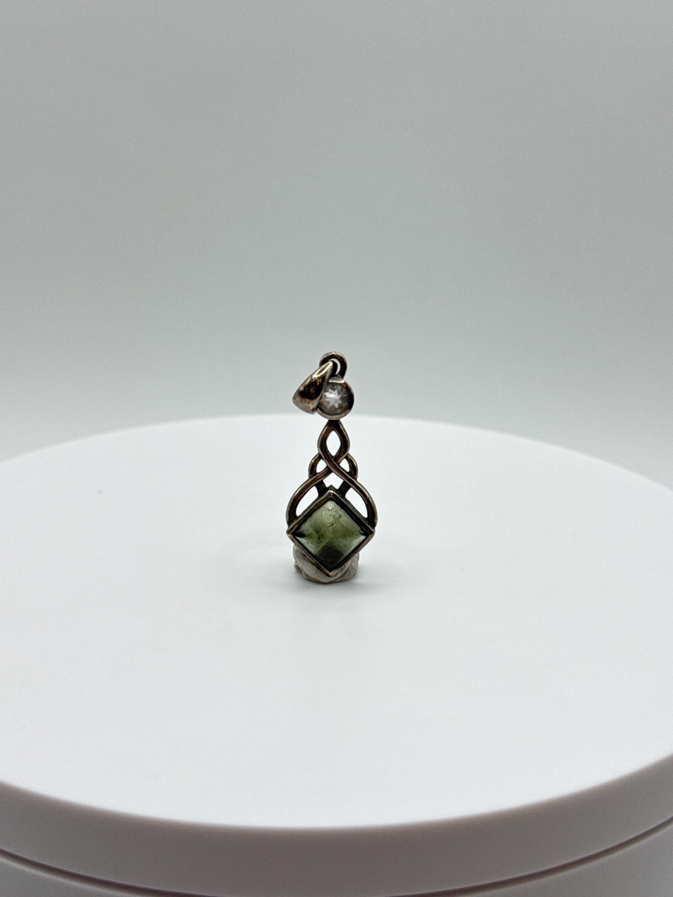 Moldavite Sterling Silver Celtic Knot Pendant - 2.55 Grams