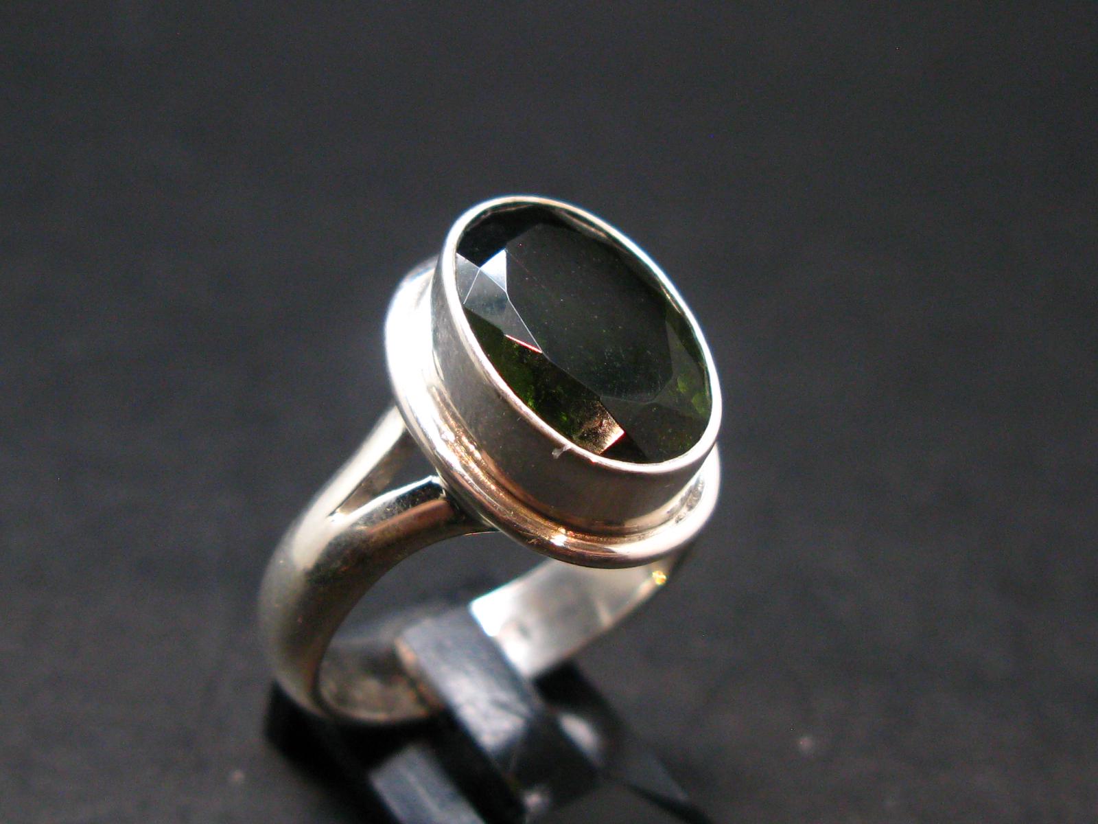 Moldavite Tektite Facetted Silver Ring from Czech Republic - Size 10 - 8.0 Grams