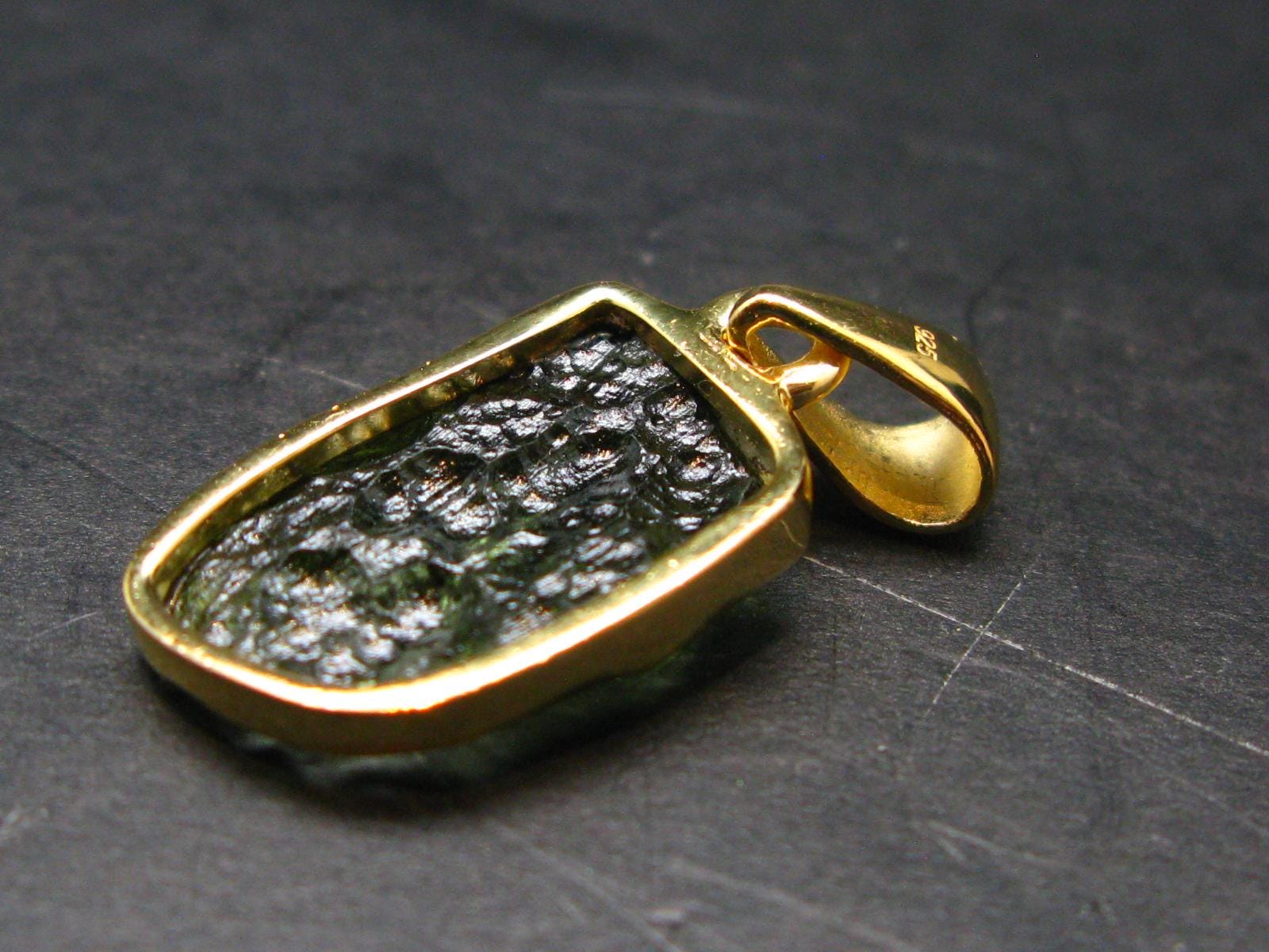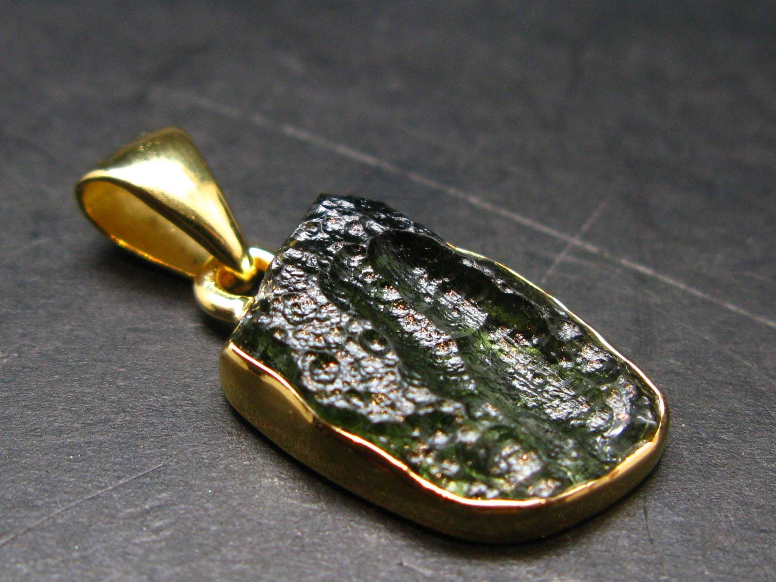 Moldavite Tektite Gold Plated Silver Pendant from Czech Republic - 1.1" - 2.0 Grams
