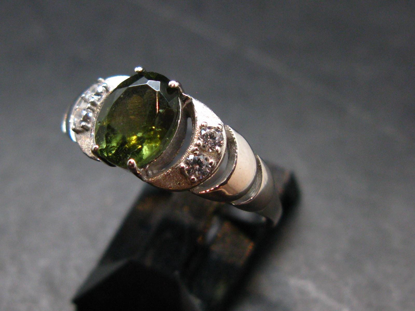 Moldavite Tektite Silver Ring from Czech Republic - Size 7.25 - 2.53 Grams