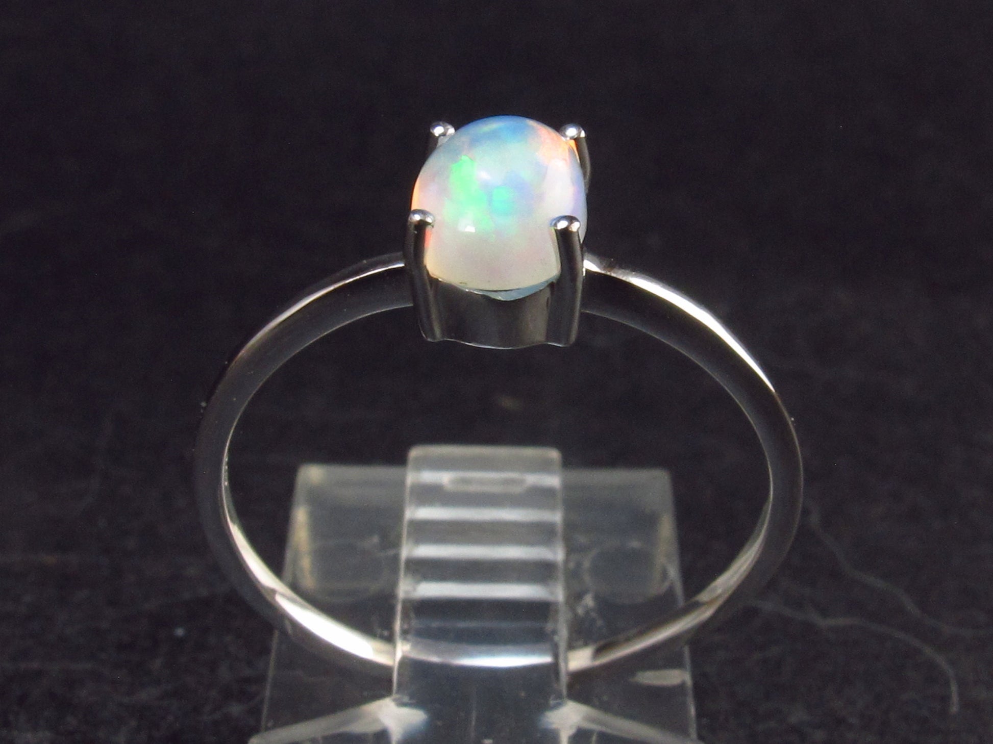 Nice play of colors Precious Opal ring set in sterling silver from Ethiopia.