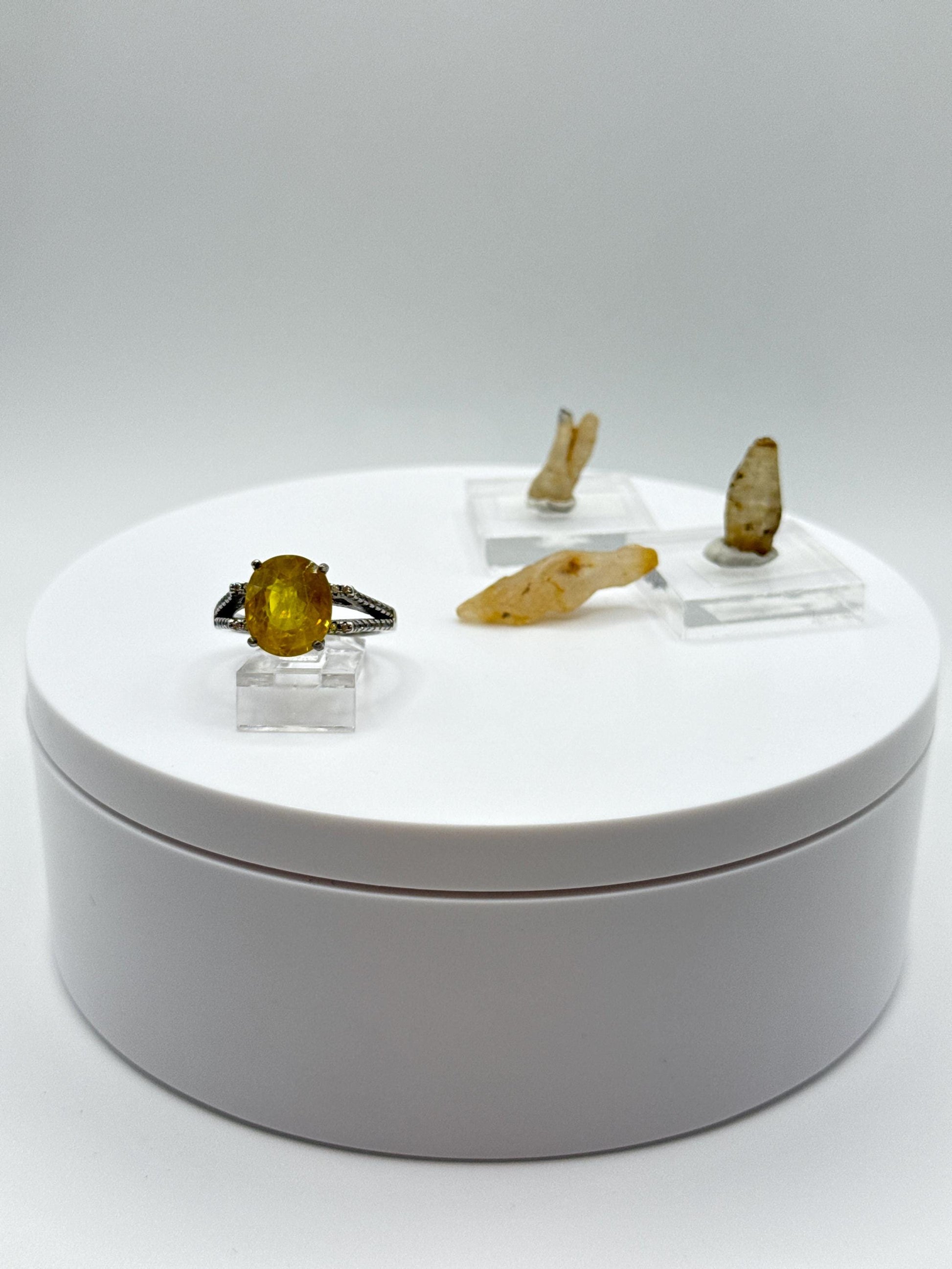 This statement ring showcases a large faceted oval yellow sapphire set in sterling silver, with a detailed band that enhances its brilliance and timeless elegance. Yellow sapphire is celebrated as a stone of abundance, wisdom, and prosperity, while sapphire itself is the traditional September birthstone, making this ring both meaningful and stylish. Ideal for gemstone jewelry lovers, statement ring collectors, or as a special birthday or anniversary gift, this oval yellow sapphire ring brings radiant energy, elegance, and sophistication to any collection.