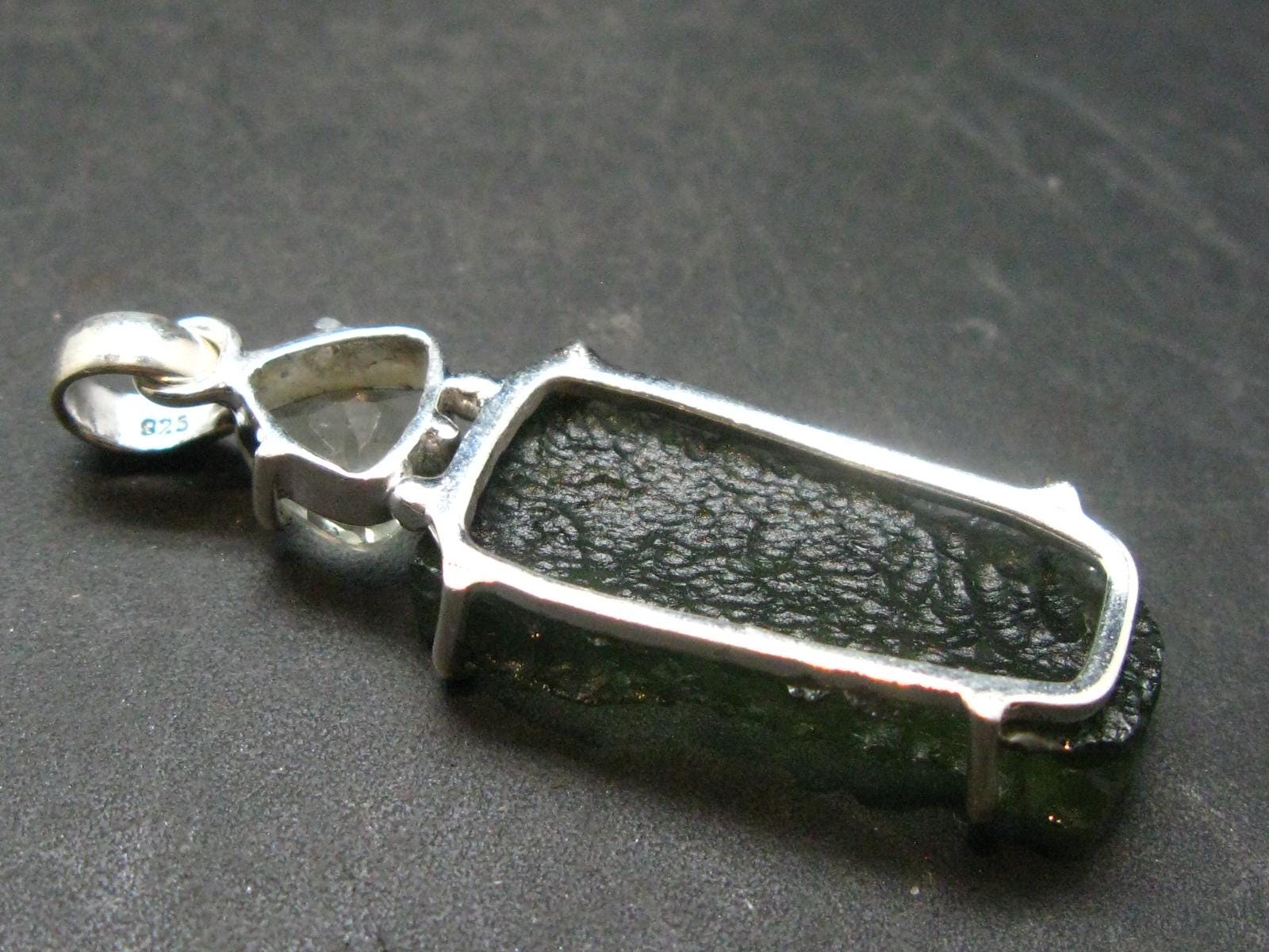 Size: 4.9 Centimeters with bail; Moldavite is 2.9 x 1.6 cm; Libyan tektite is 0.9 x 0.9 cm