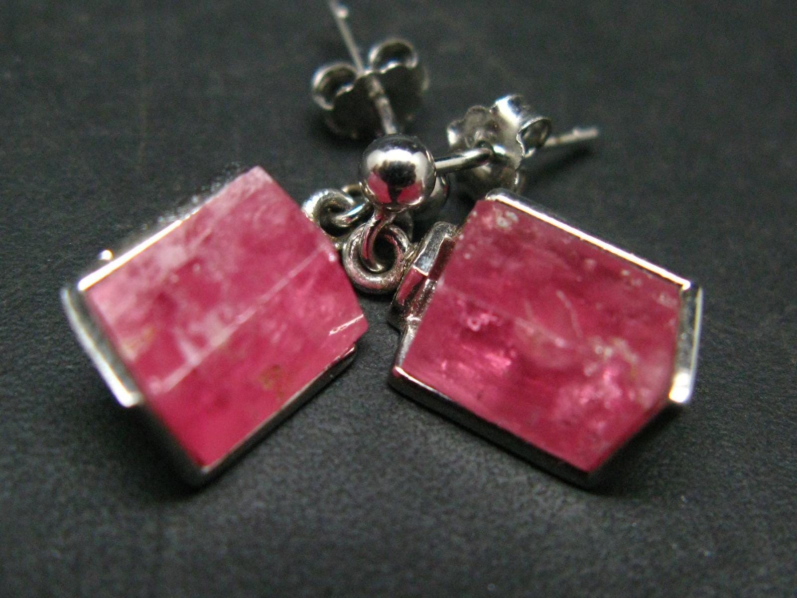 These are very nice Rhodochrosite crystal sterling silver stud earrings from classic locality in Colorado. They are in great condition with some transparency.