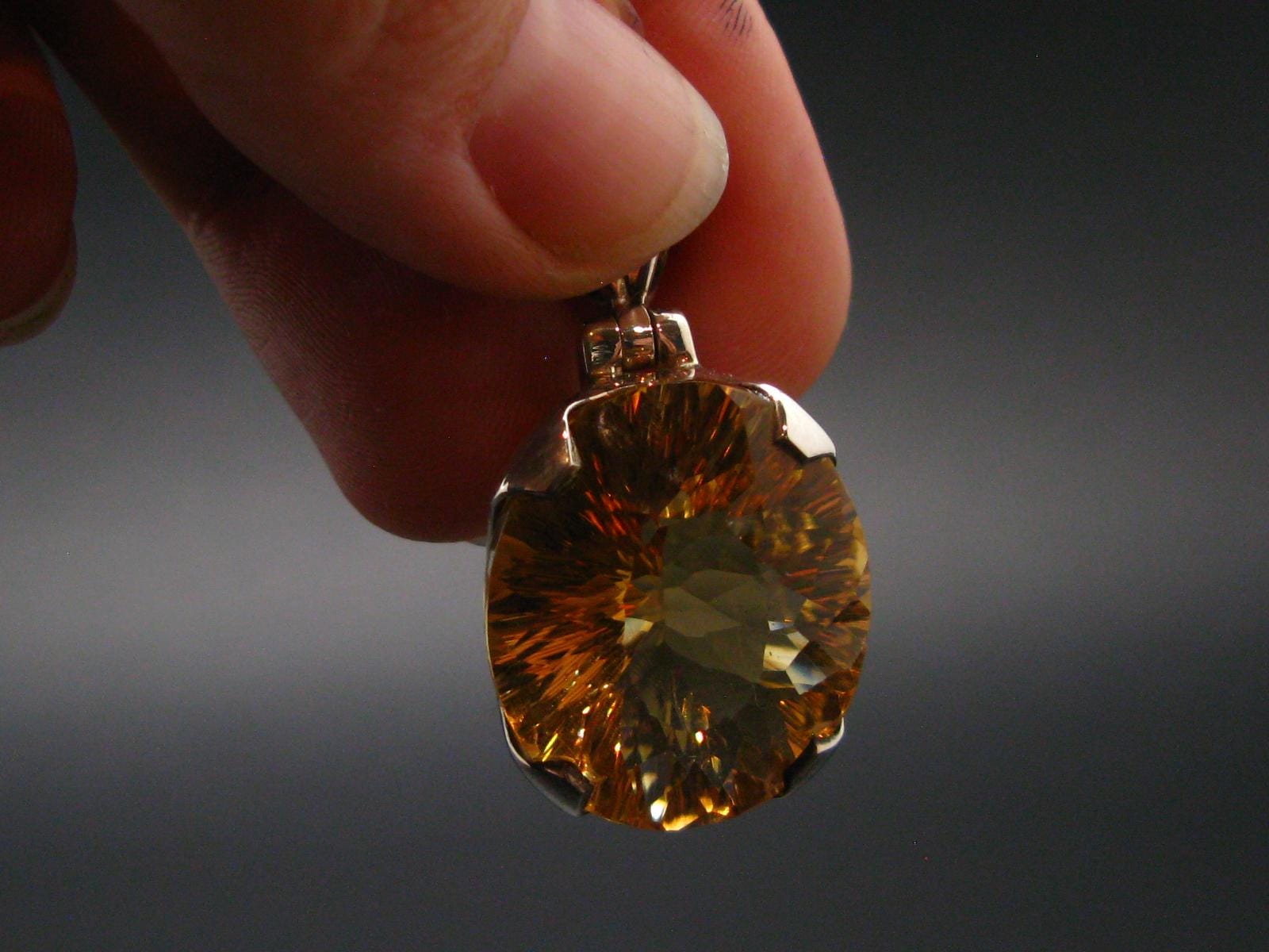 The silver setting for this pendant is perfectly suited to this Citrine gemstone.