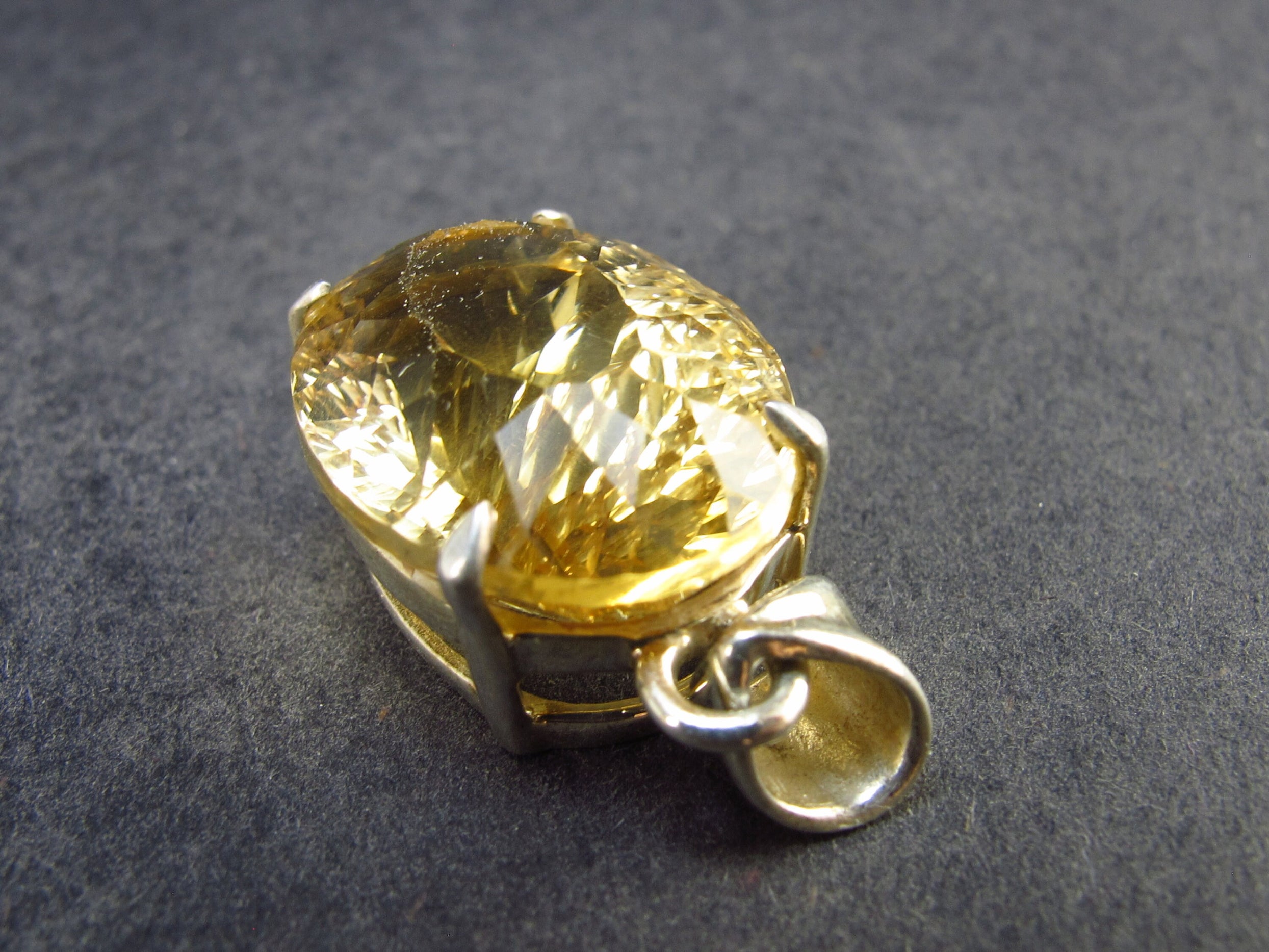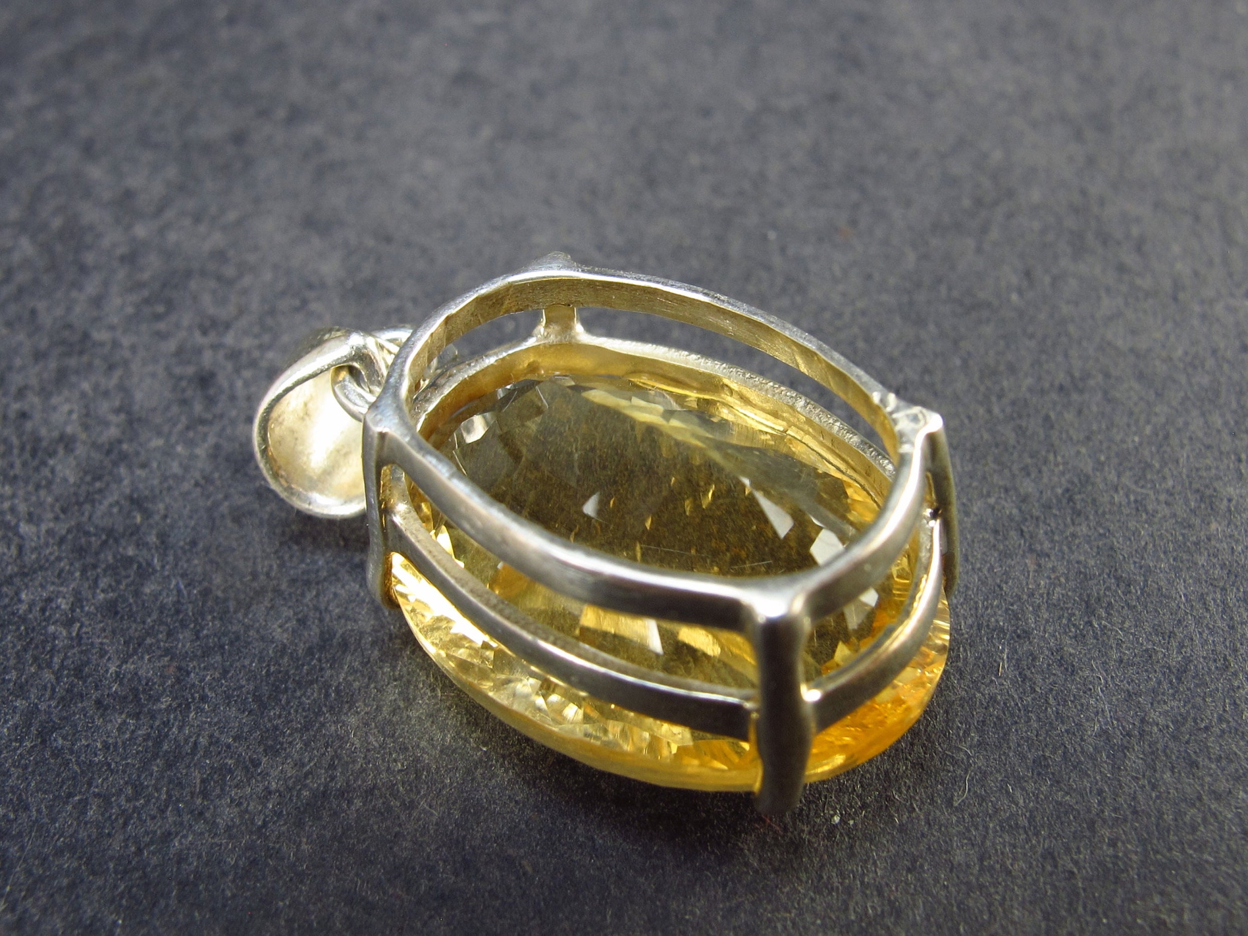 Intense yellow Citrine (variety of Quartz) pendant set in sterling silver 925. According to Chinese legends, Citrine is "The Stone of Success". Citrine has been called the 'Merchants Stone' as it has the power to increase business and profits, helping not only to acquire wealth but to keep hold of it!