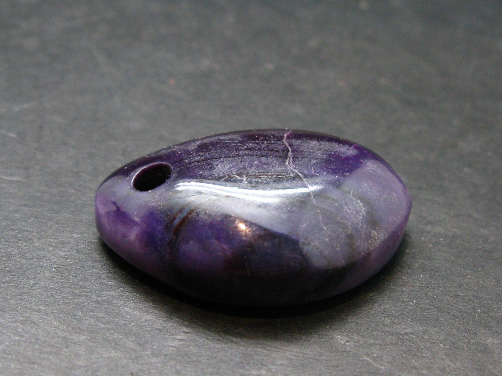 A beautiful rich purple Sugilite pendant from South Africa with a good color. This pendant is metal free with a 3mm hole through it.