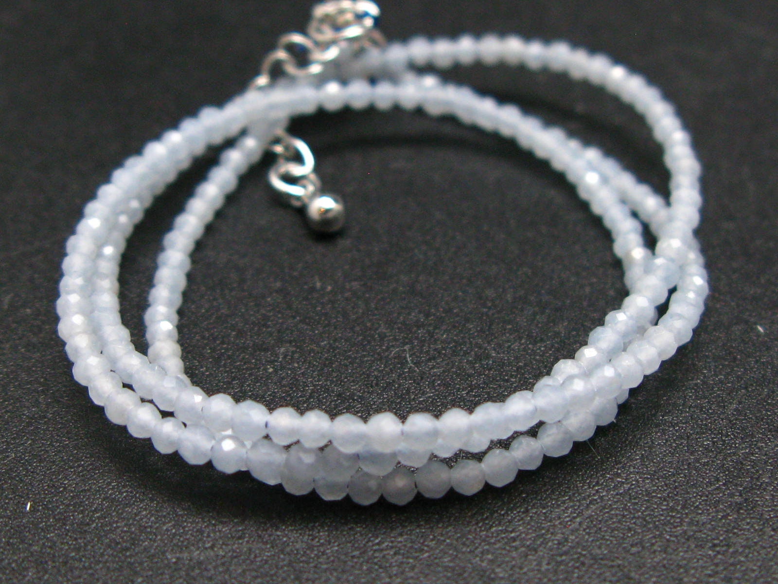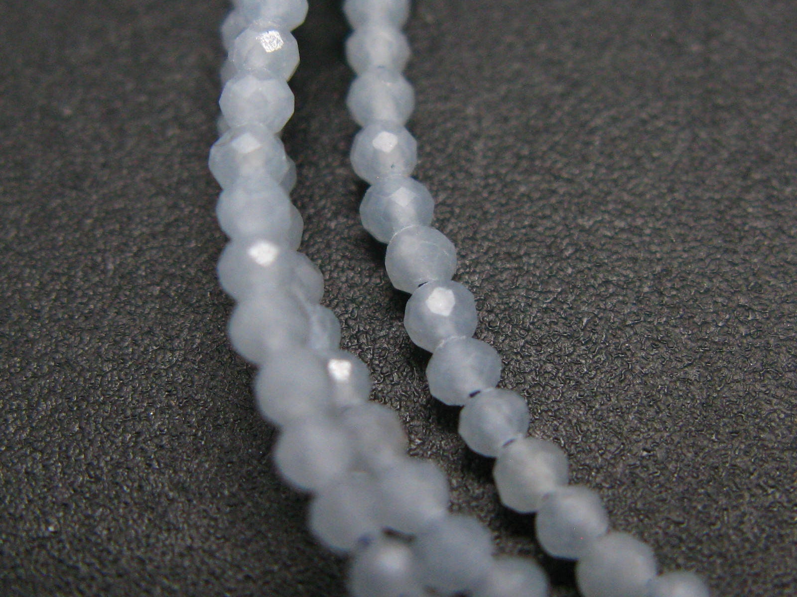 Sparkly, lightweight natural untreated Blue-Grey Angelite (anhydrite) Necklace with hand faceted beads from Peru. The beads measuring 2 mm.
