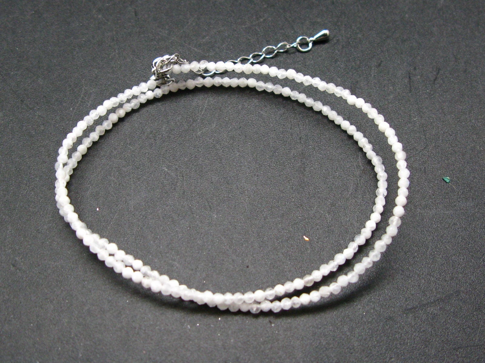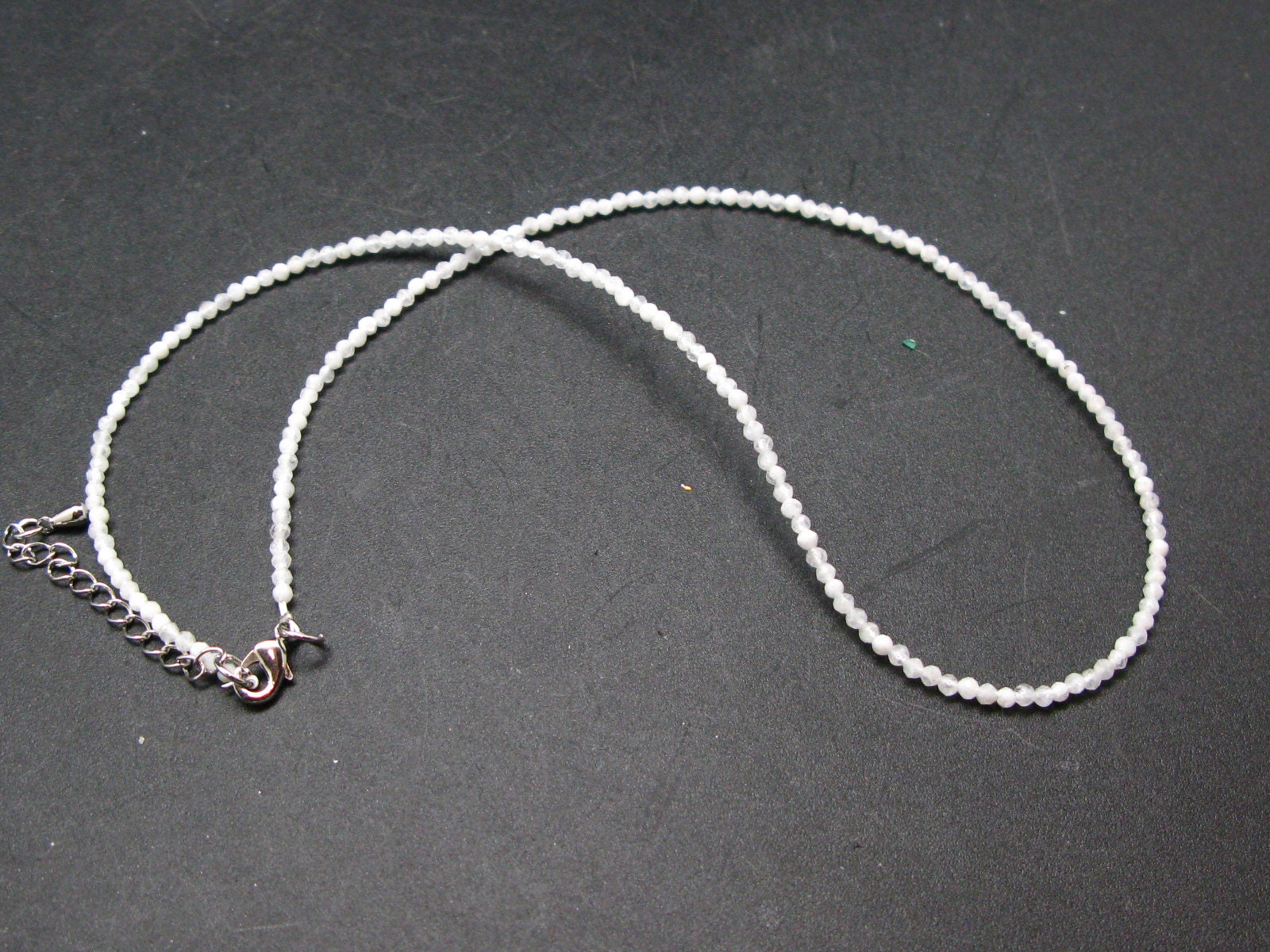 Lightweight Gem Sparkly Faceted Moonstone Tiny 2mm Round Beads Necklace from Madagascar - 16"