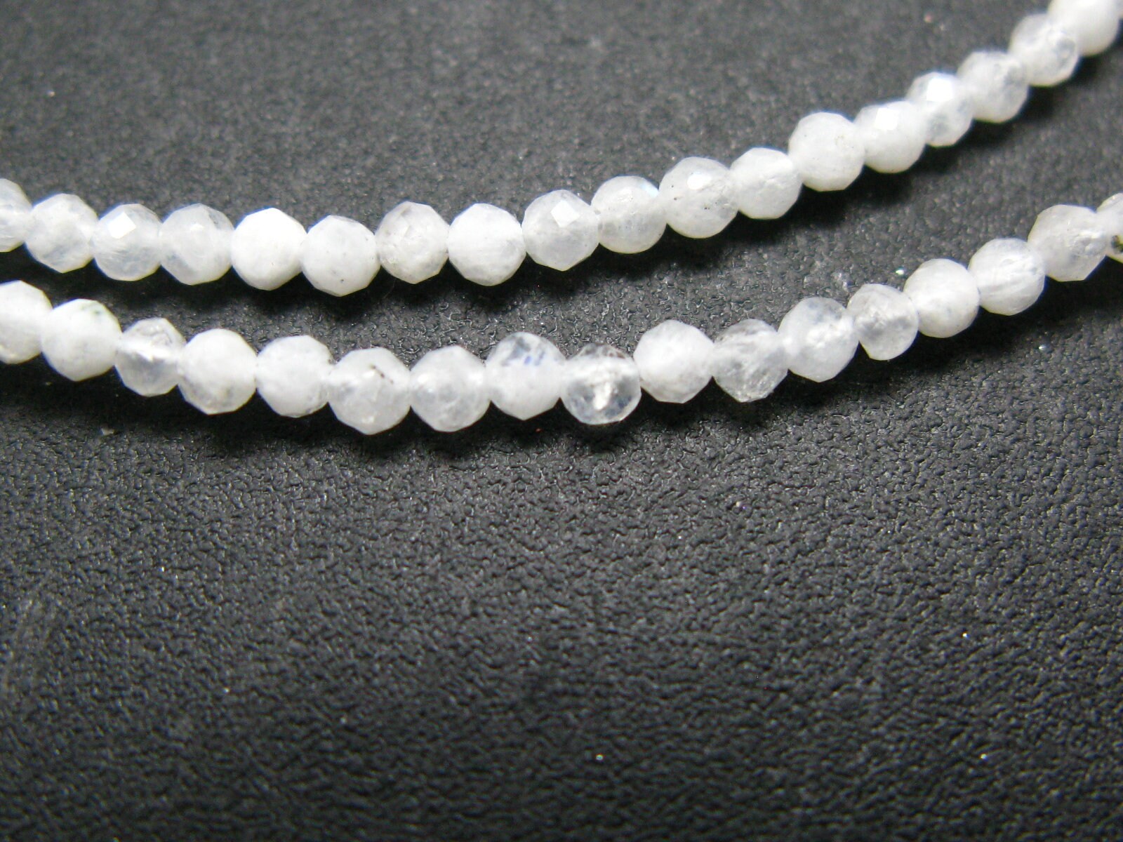 Sparkly, lightweight gem quality natural color moonstone Necklace with hand faceted beads from Madagascar. The beads measuring 2 mm.