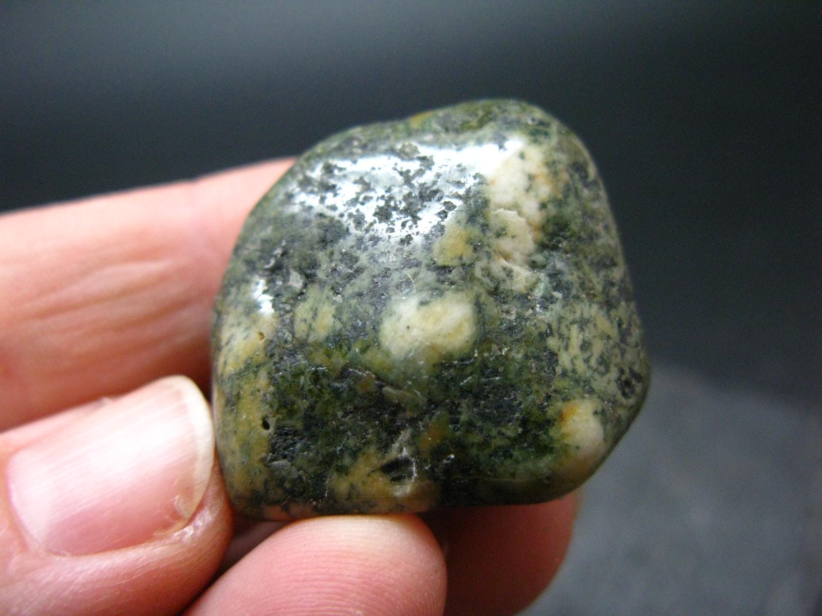 This is a very rare green Stonehenge Bluestone tumbled stone from UK.