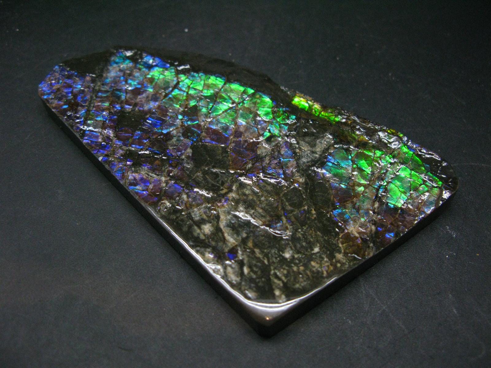 A beautiful colorful Ammolite fossil with colorful layering on the Ammonite from Alberta, Canada, the only place it comes from.