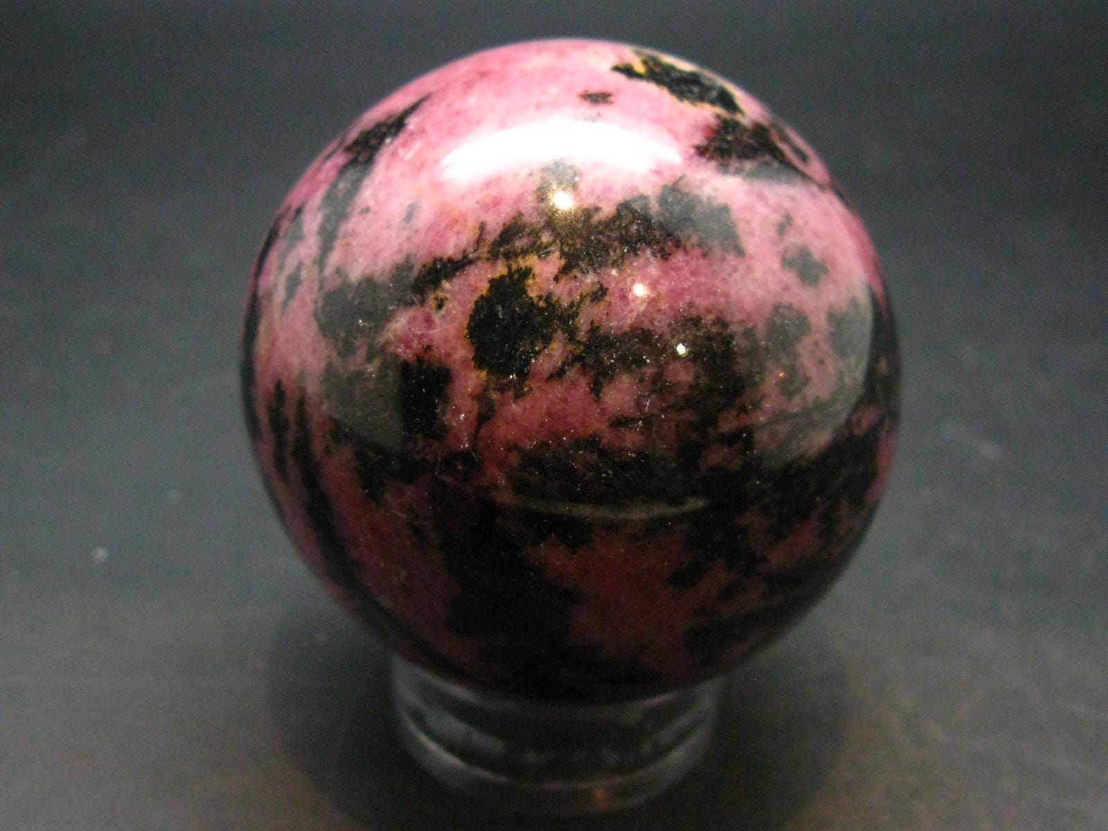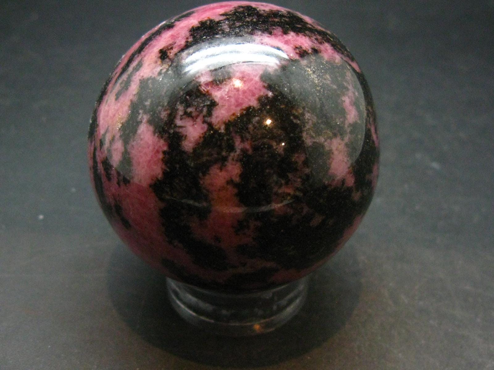 A very cool pink Rhodonite sphere from Canada. It has natural untreated color.