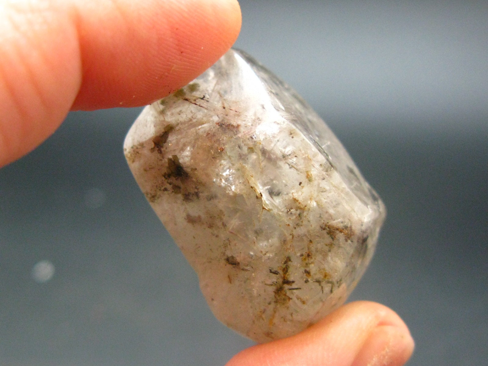 Beautiful Witches Finger crystal tumble from Zambia in perfect condition. (Quartz with inclusions of Muscovite, Feldspar, Zircon, Actinolite and Iron).
