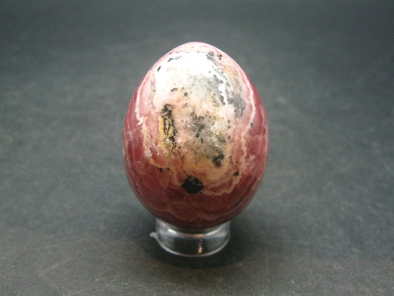 This is a beautiful polished Rhodochrosite egg from Argentina. It has rich pink color with beautiful patterns.