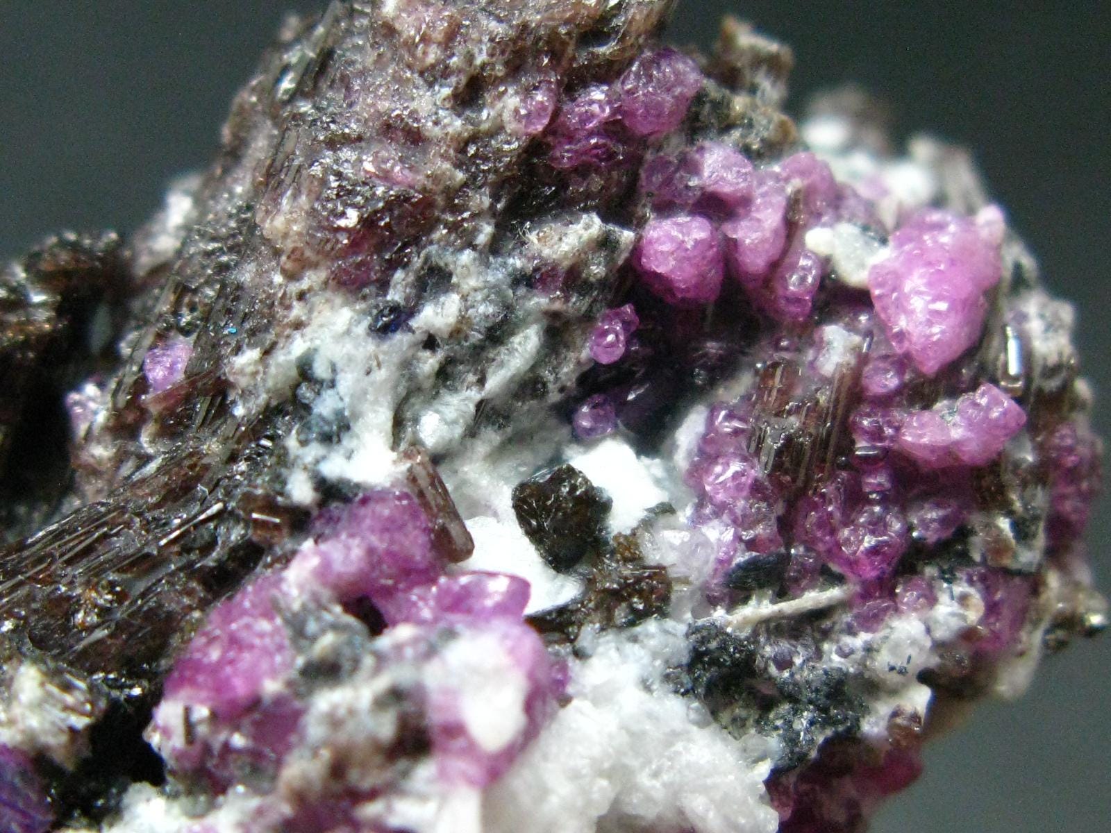 Quite a large single Painite crystal from Burma with some termination and a nice brown color. It is surrounded by pink-red Rubies by association.