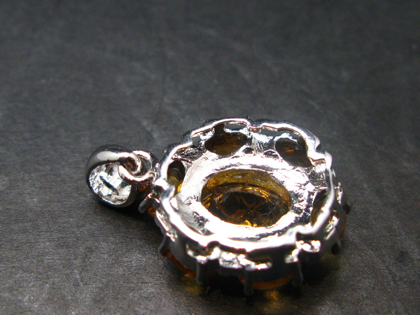 Yellow Citrine Gem Facetted Sterling Silver Pendant From Brazil With CZ - 0.9" - 3.16 Grams