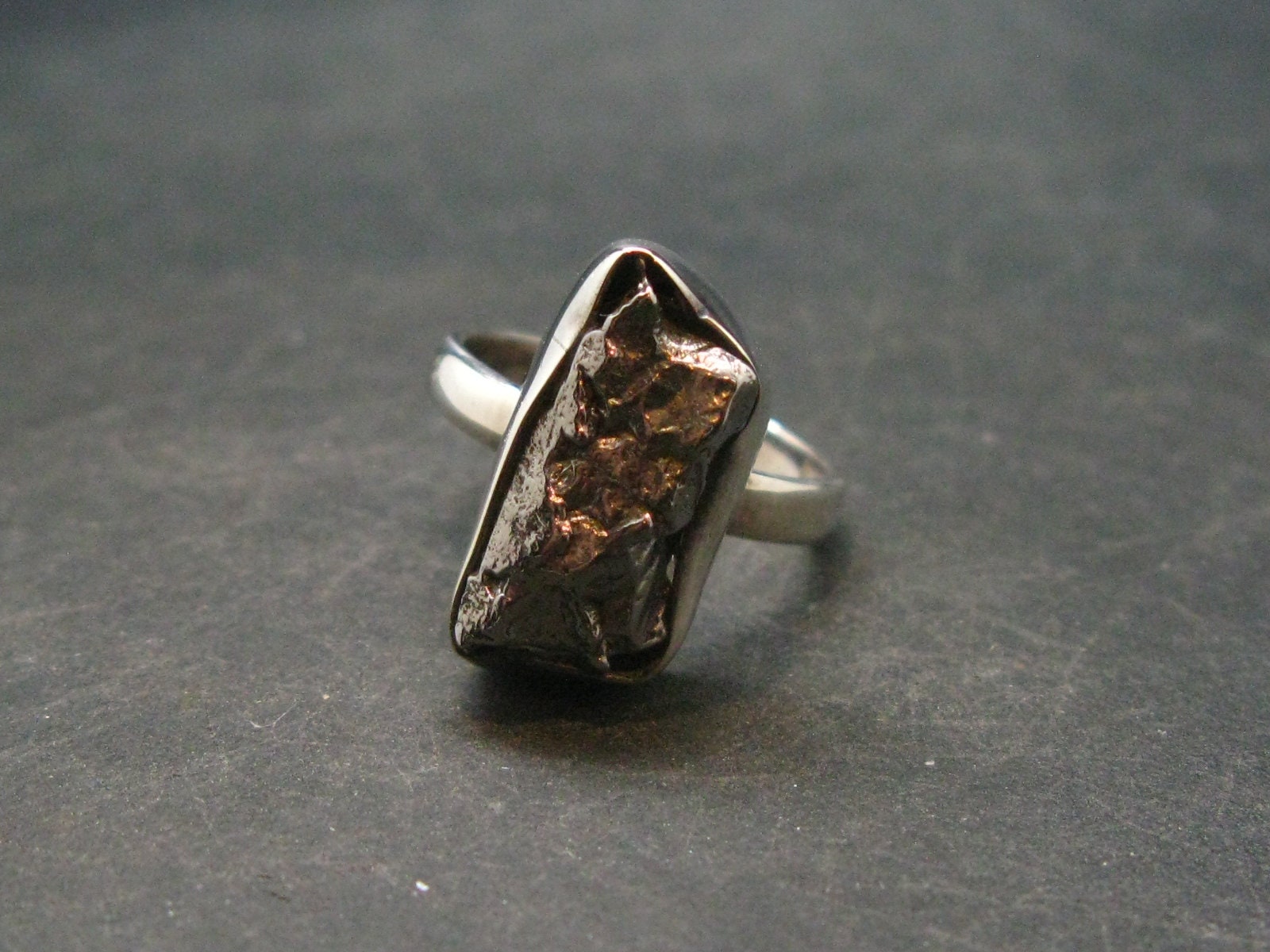 This is a beautiful top quality rare Meteorite ring with a Campo Del Cielo Meteorite set in sterling silver from Argentina.