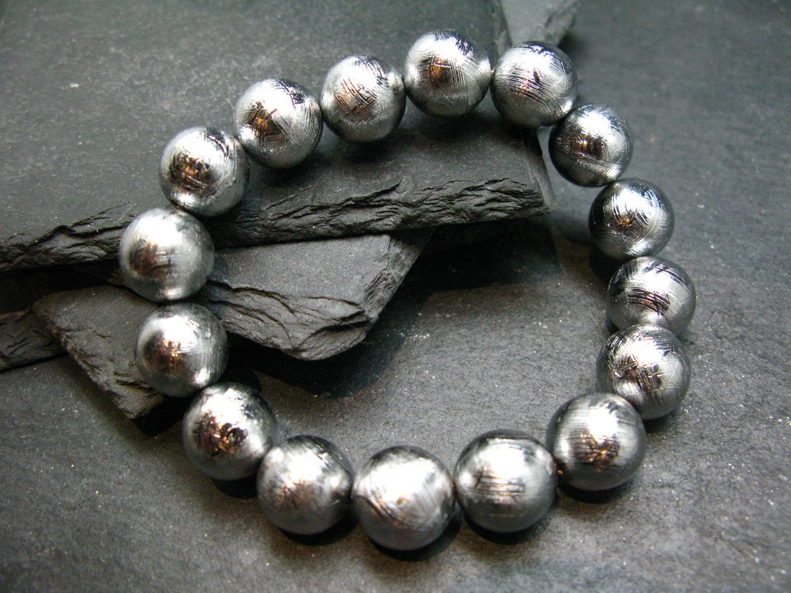 View compareMeteorite Muonuonolusta Genuine Bracelet ~ 7 Inches ~ 12mm Round Beads