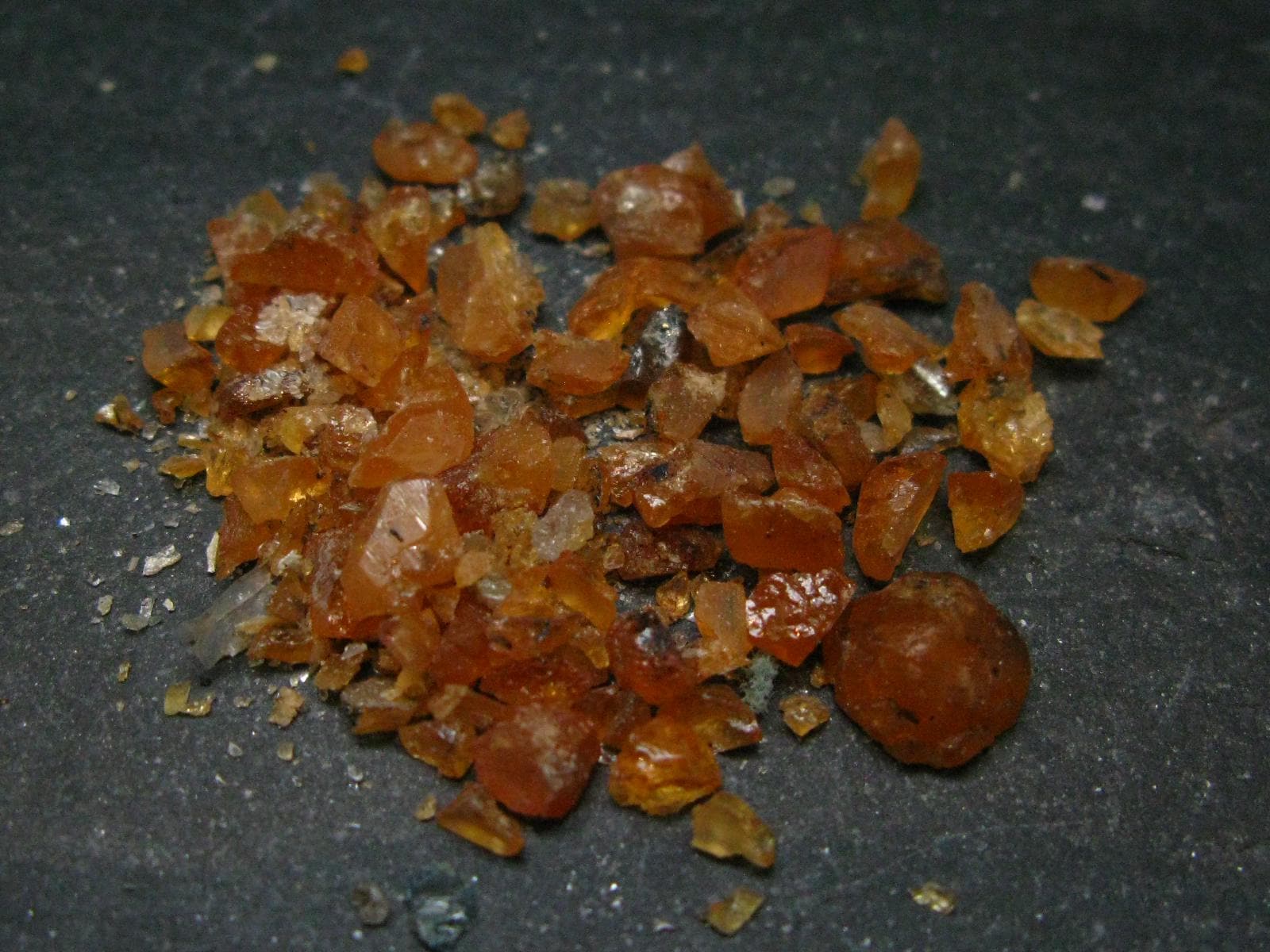 This is a simply rare and beautiful lot of Spessartine crystals and offcuts from Tanzania with some Spessartine dust.