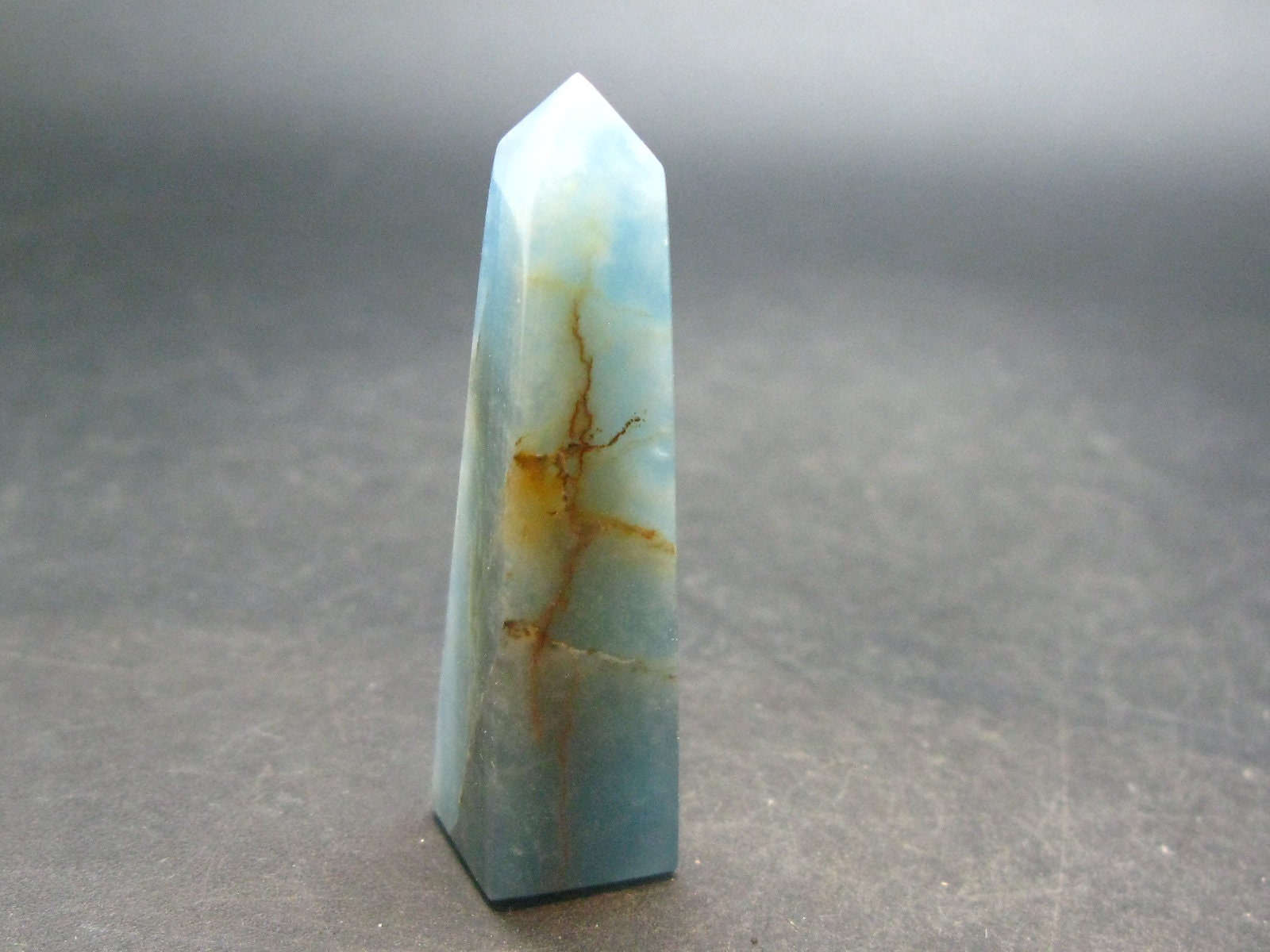 This is gorgeous natural Obelisk Pyramid blue Lemurian Aquatine Calcite (blue onyx or aquamarine onyx) from Argentina.