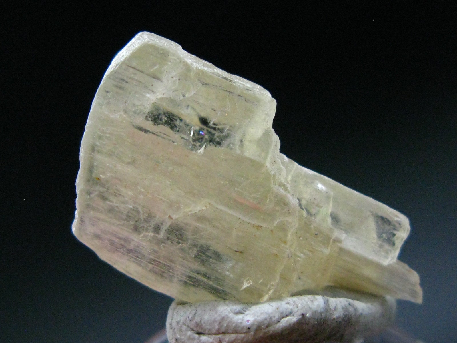 This is a very rare clear Richterite crystal, partially terminated from Tanzania. It is slightly yellow color, and transluscent.