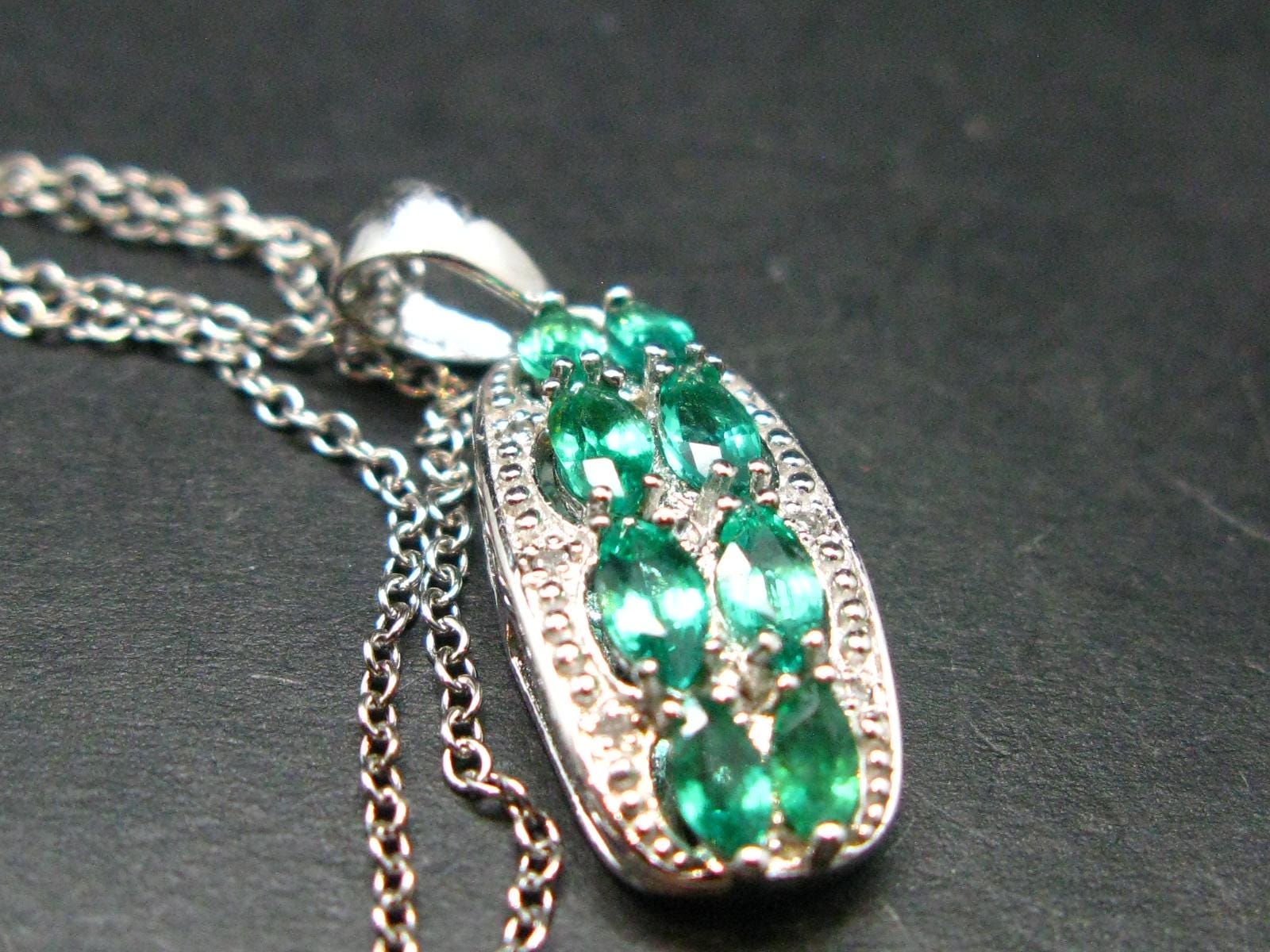 This is a very nice Emerald silver pendant with chain from Colombia. Chain is 18 inches long can be adjusted to 20 inches.