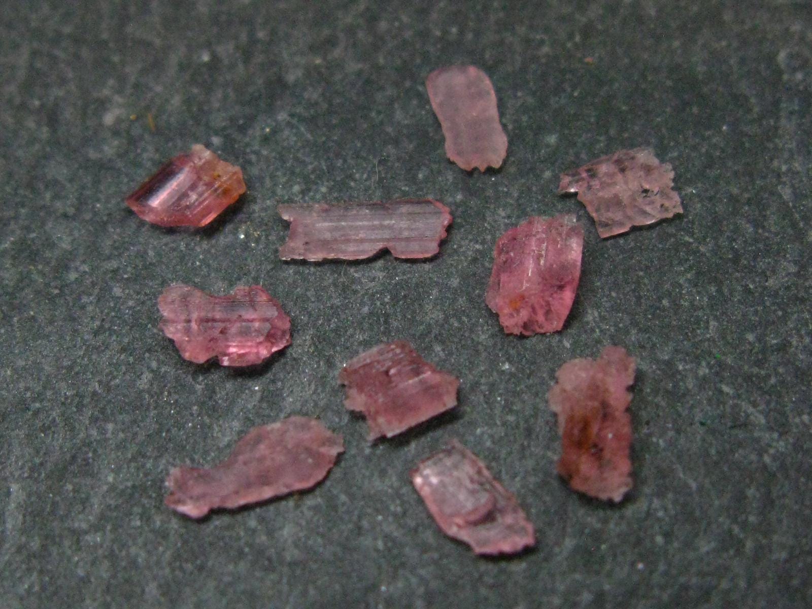 This is a rare lot of 10 rich pink gem Vayrynenite crystals from Pakistan in great condition.