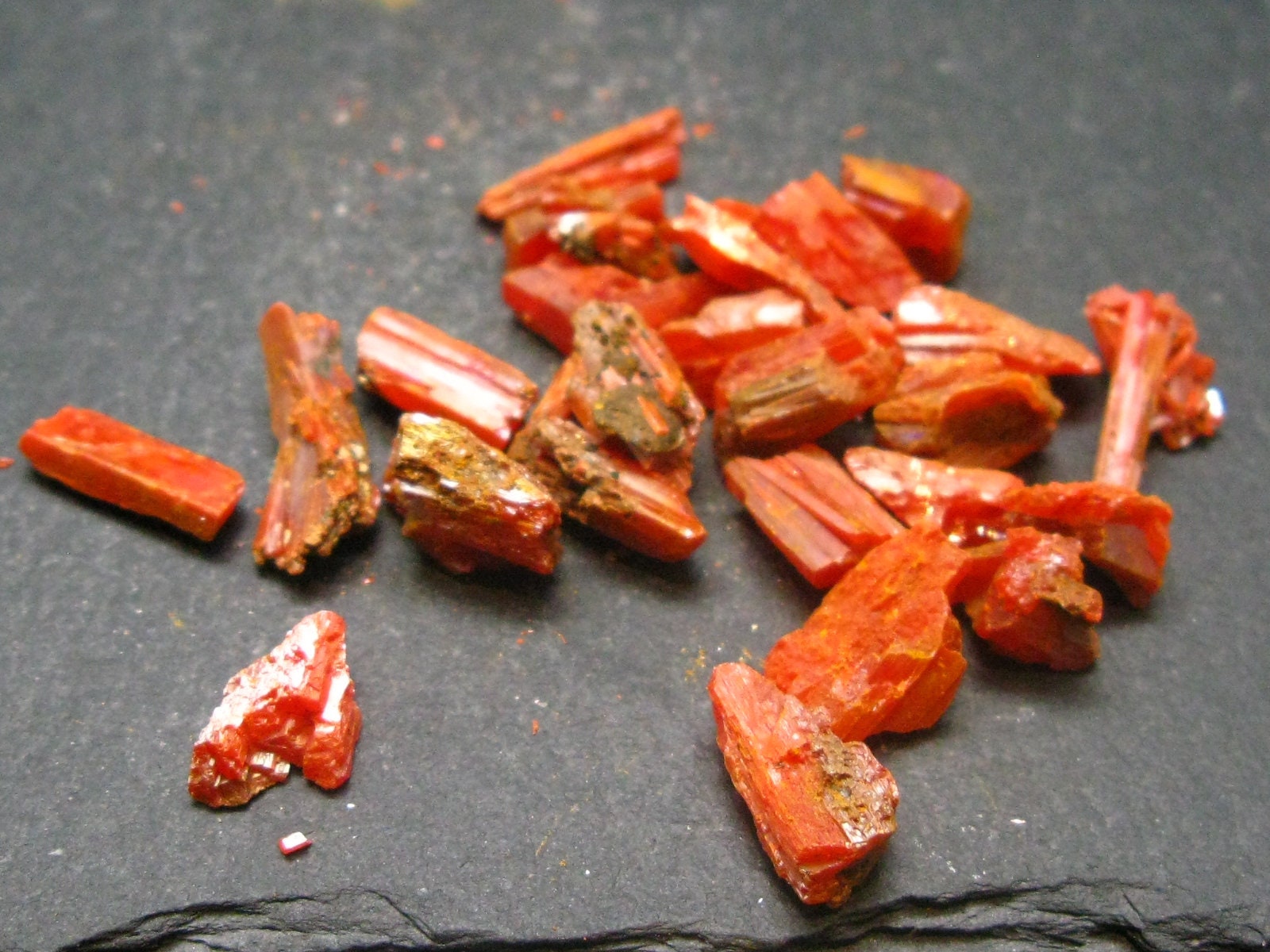 A very nice lot of about 25 rare orange Crocoite crystals from Tasmania, Australia