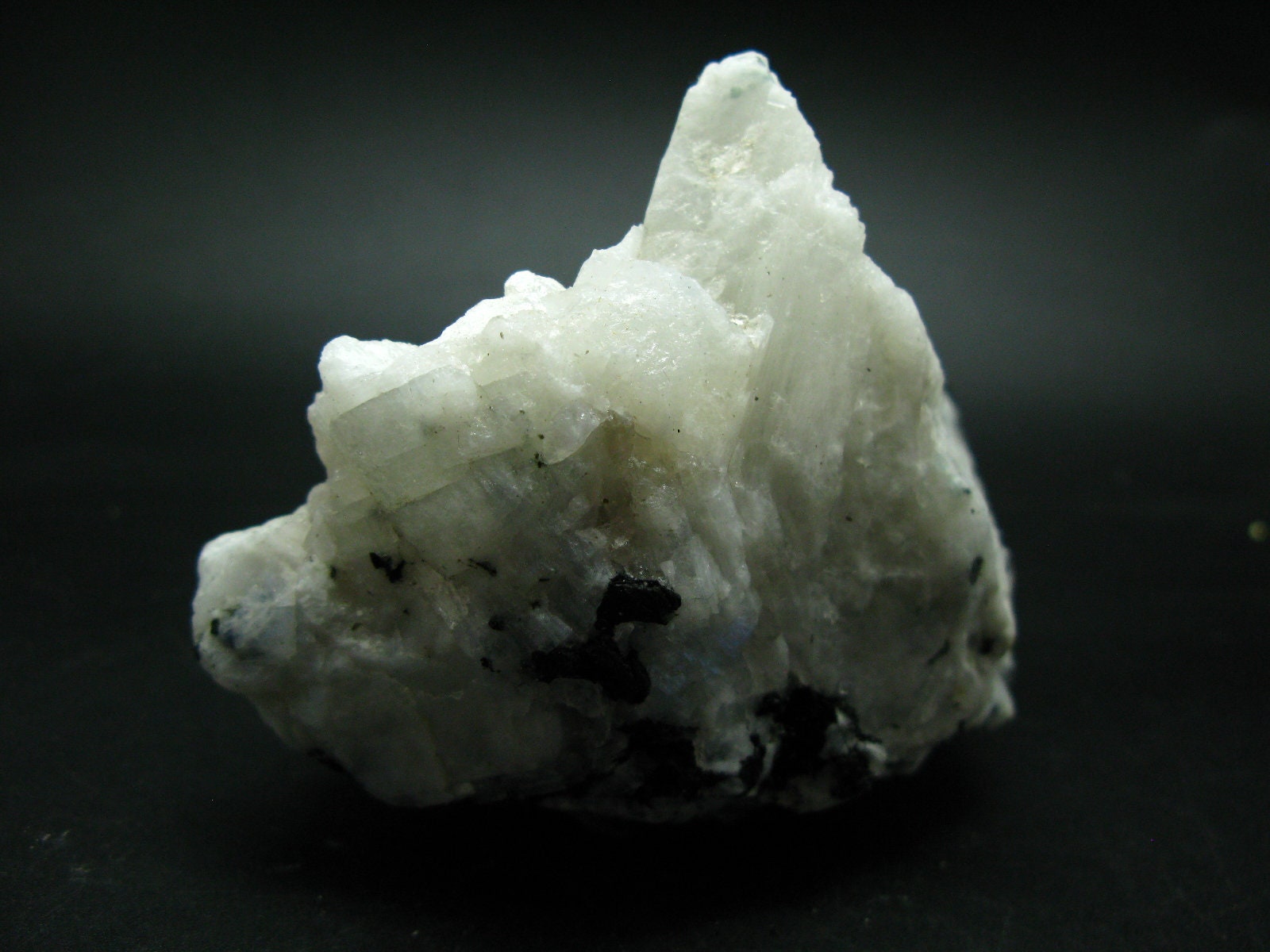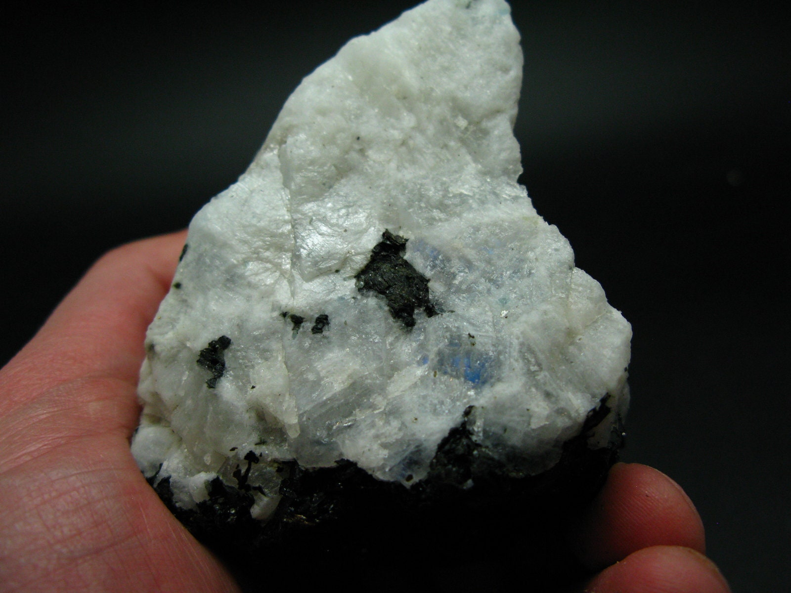 This is a cool Moonstone raw piece from Tanzania with rich blue flashes sitting on some black Biotite Mica matrix.