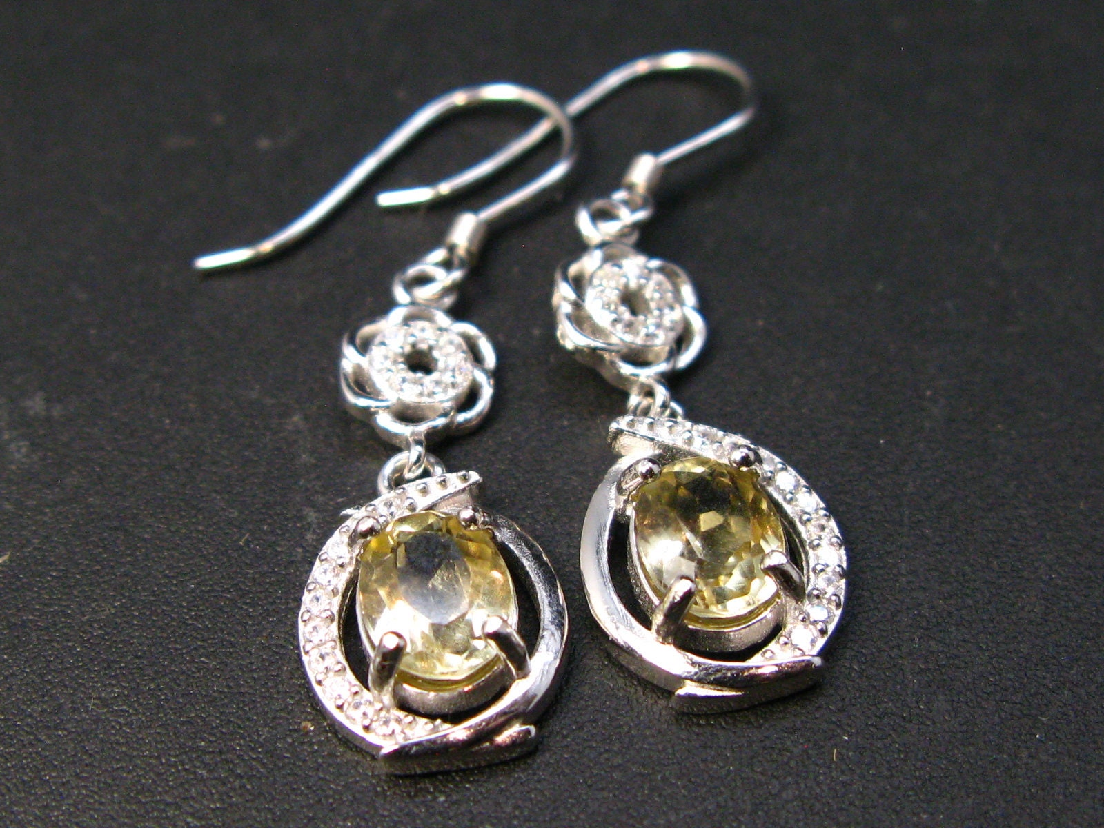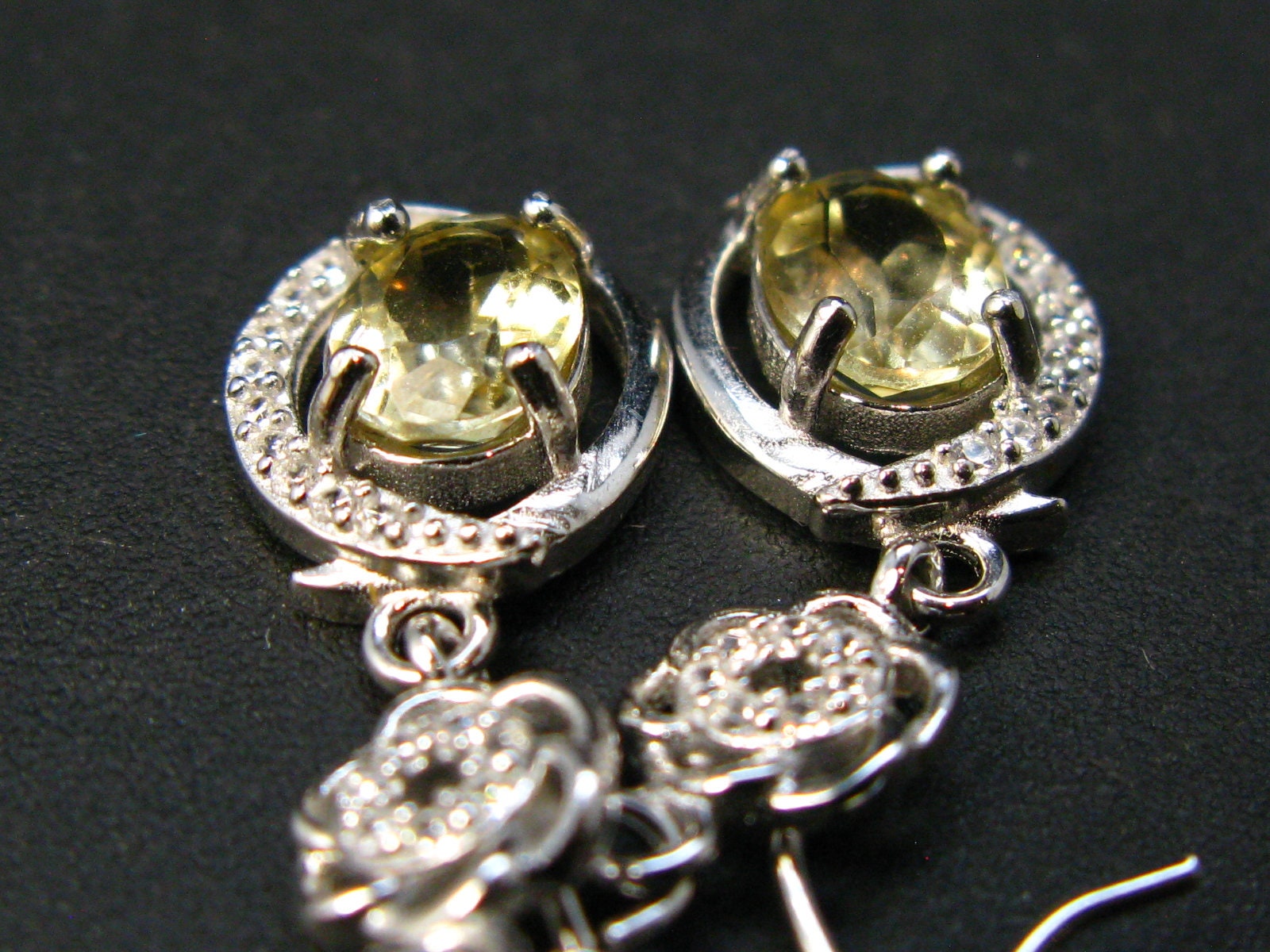 This is very rare gemmy faceted Golden Herderite dangling Sterling Silver Earrings with CZ accent from Brazil.