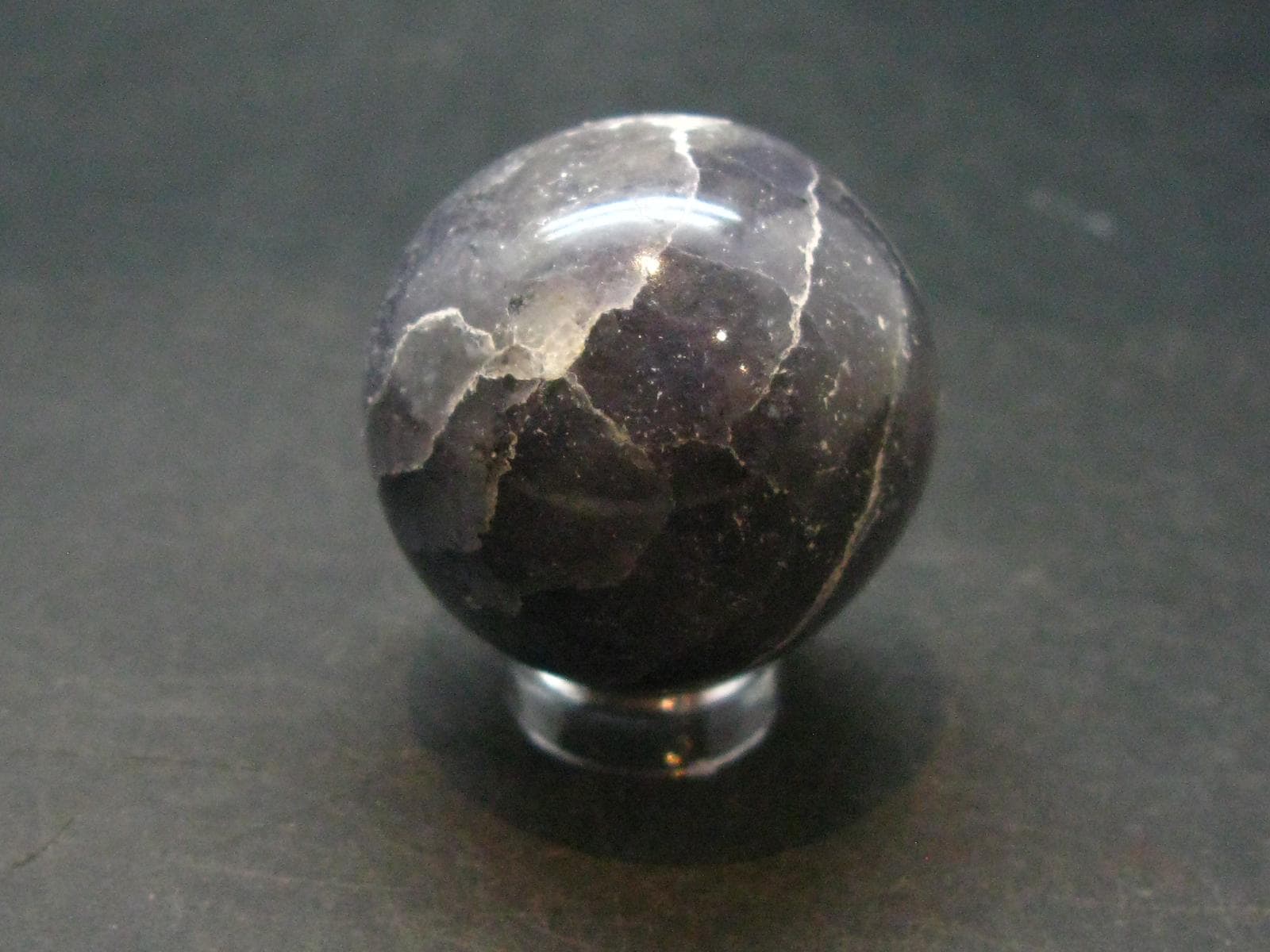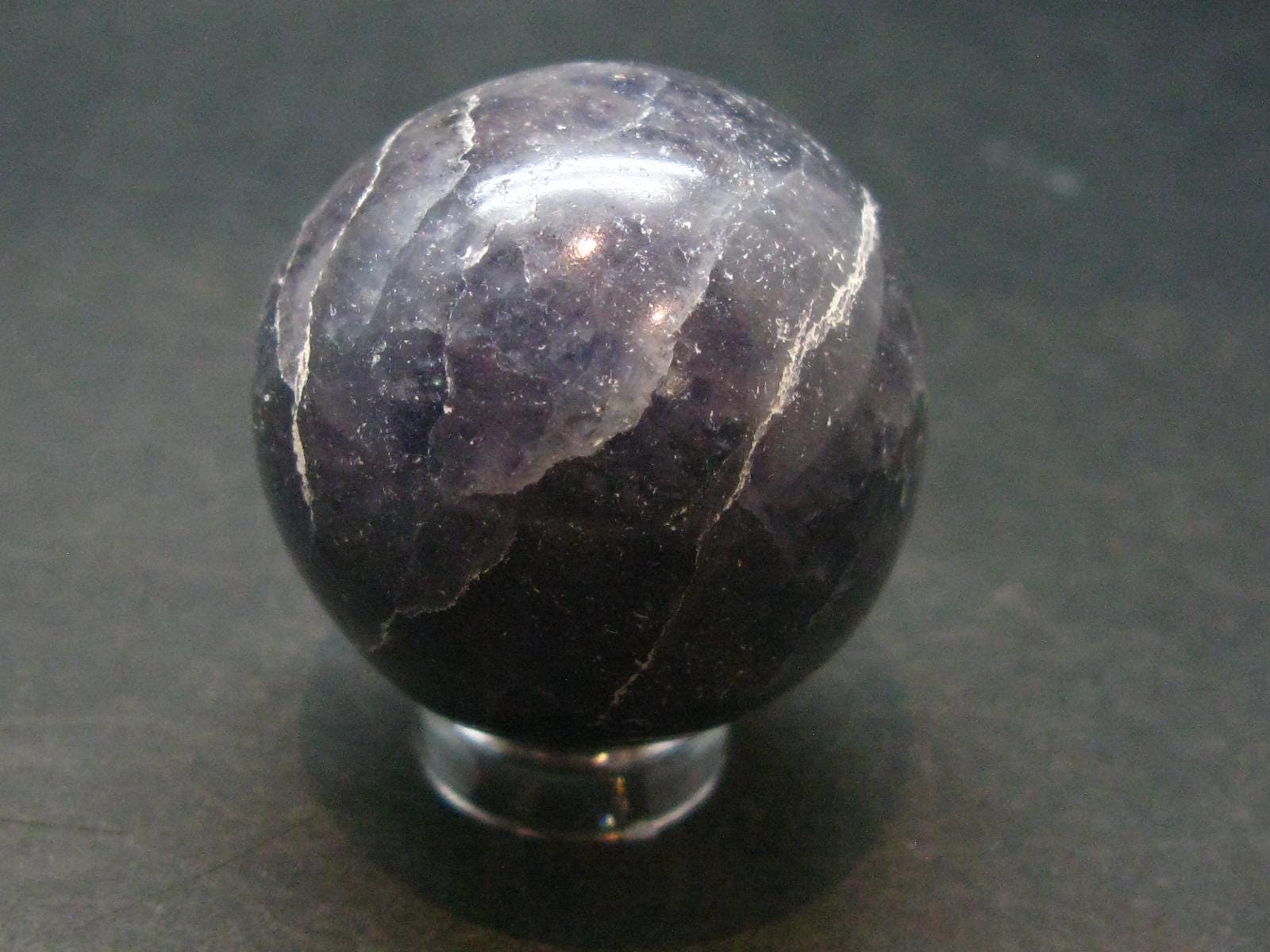A really nice rare Iolite sphere from Tanzania, Africa. It is slightly transluscent with a rich blue color. Comes with a plastic stand.