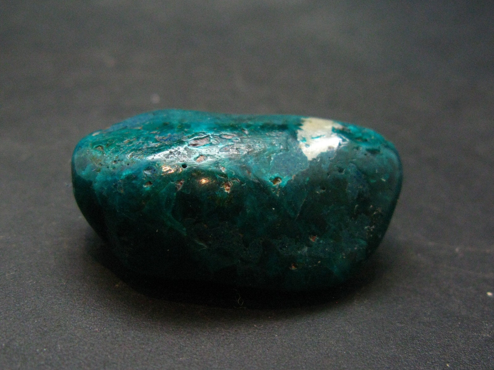 This is a very nice tumbled Dioptase stone from Congo. It is in great condition. Beautiful specimen!