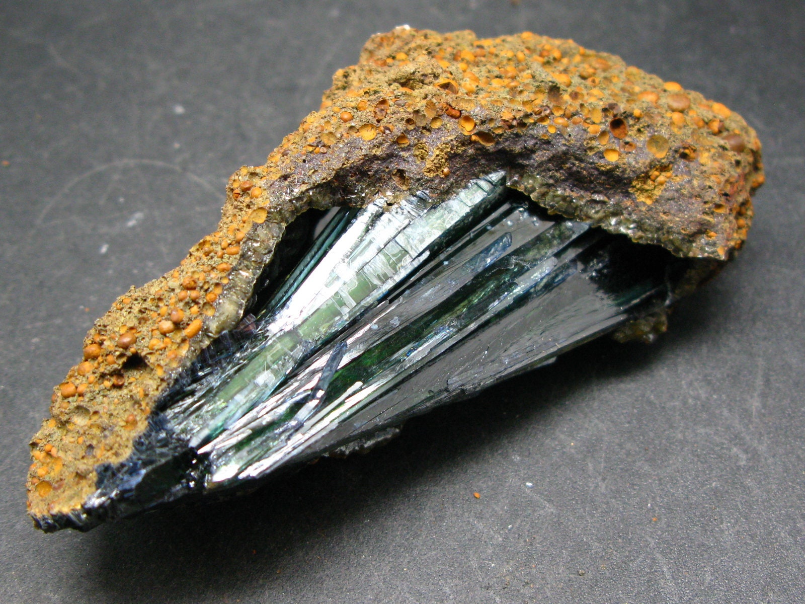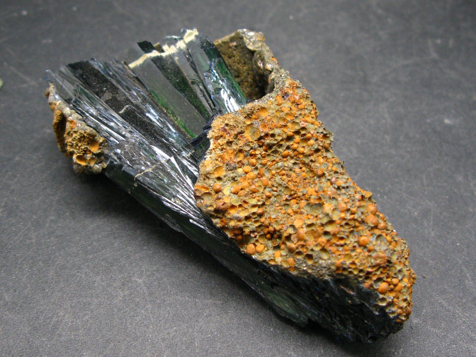 This is a beautiful and very unusual Vivianite crystals on a brown matrix. Well formed crystals with rich color.