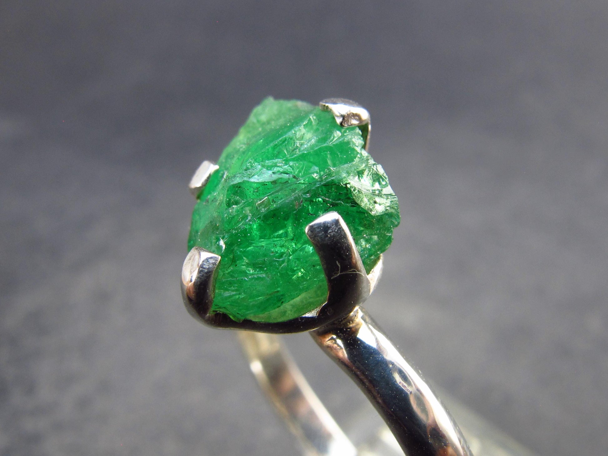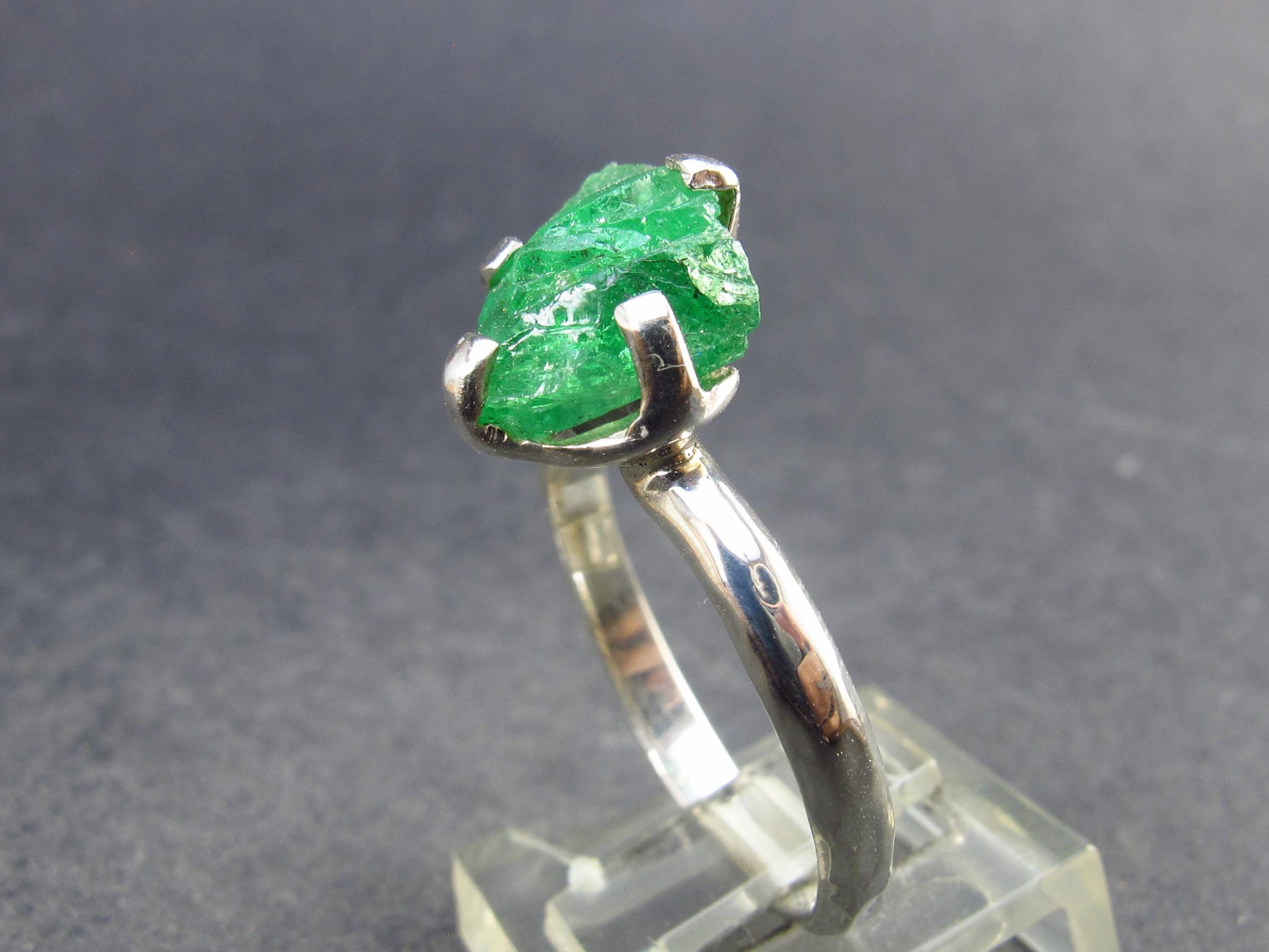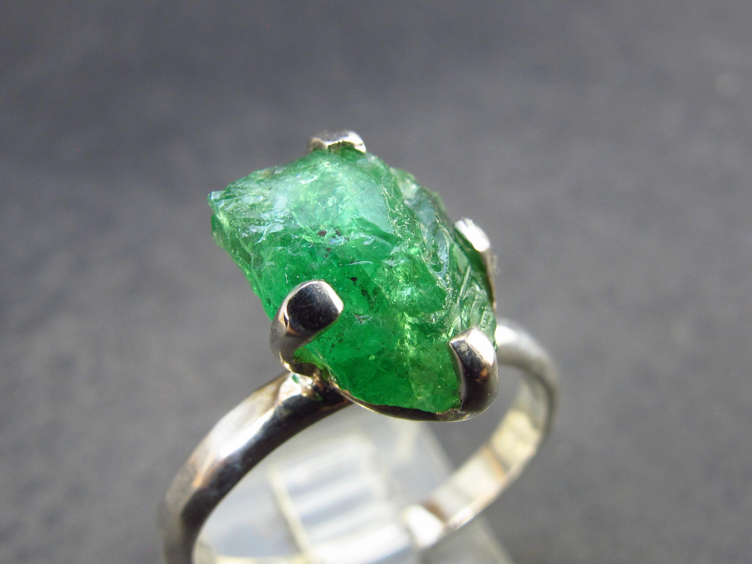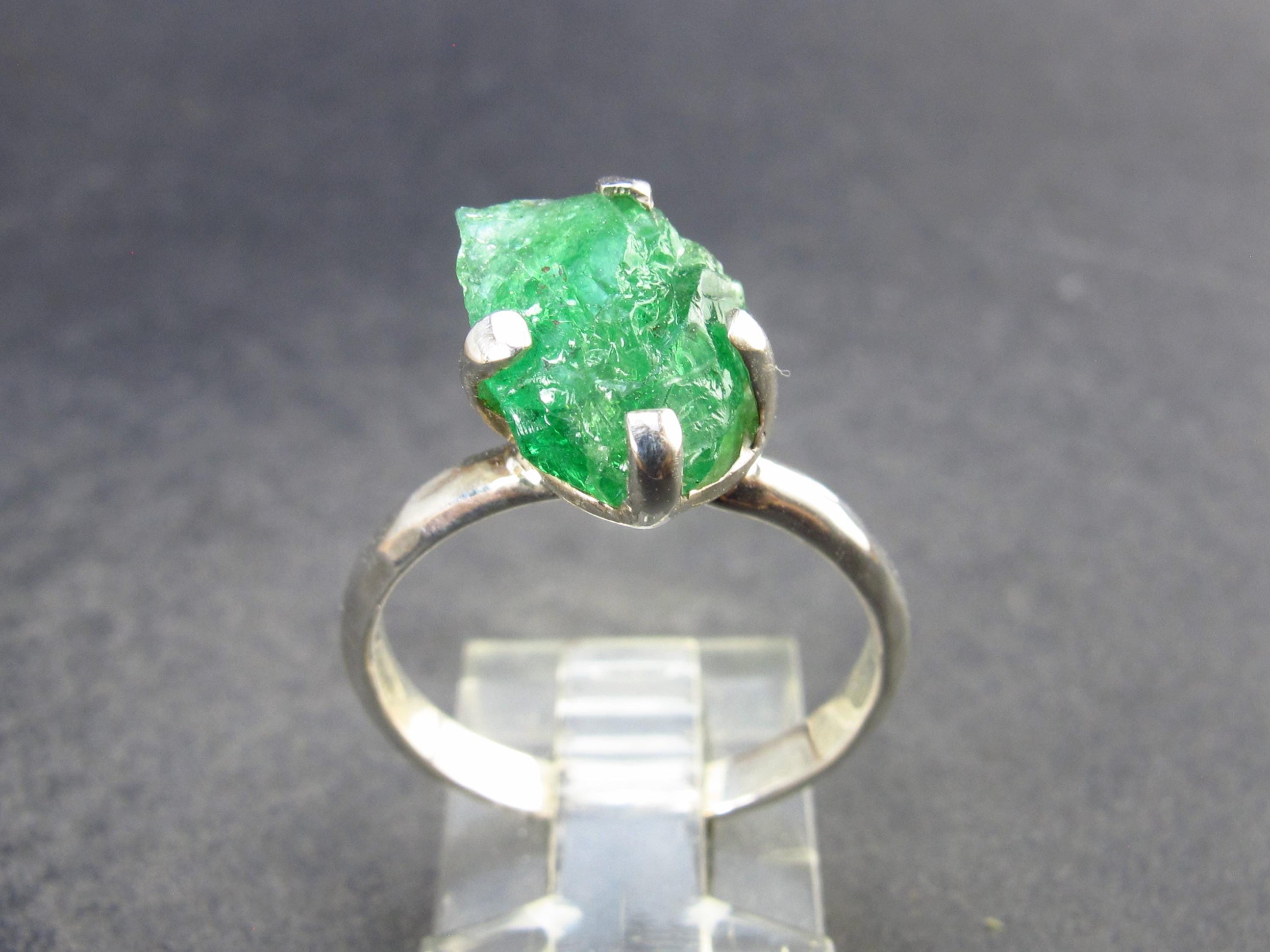 Nice Tsavorite silver ring with great rich green color. Crystal is 12mm in length.