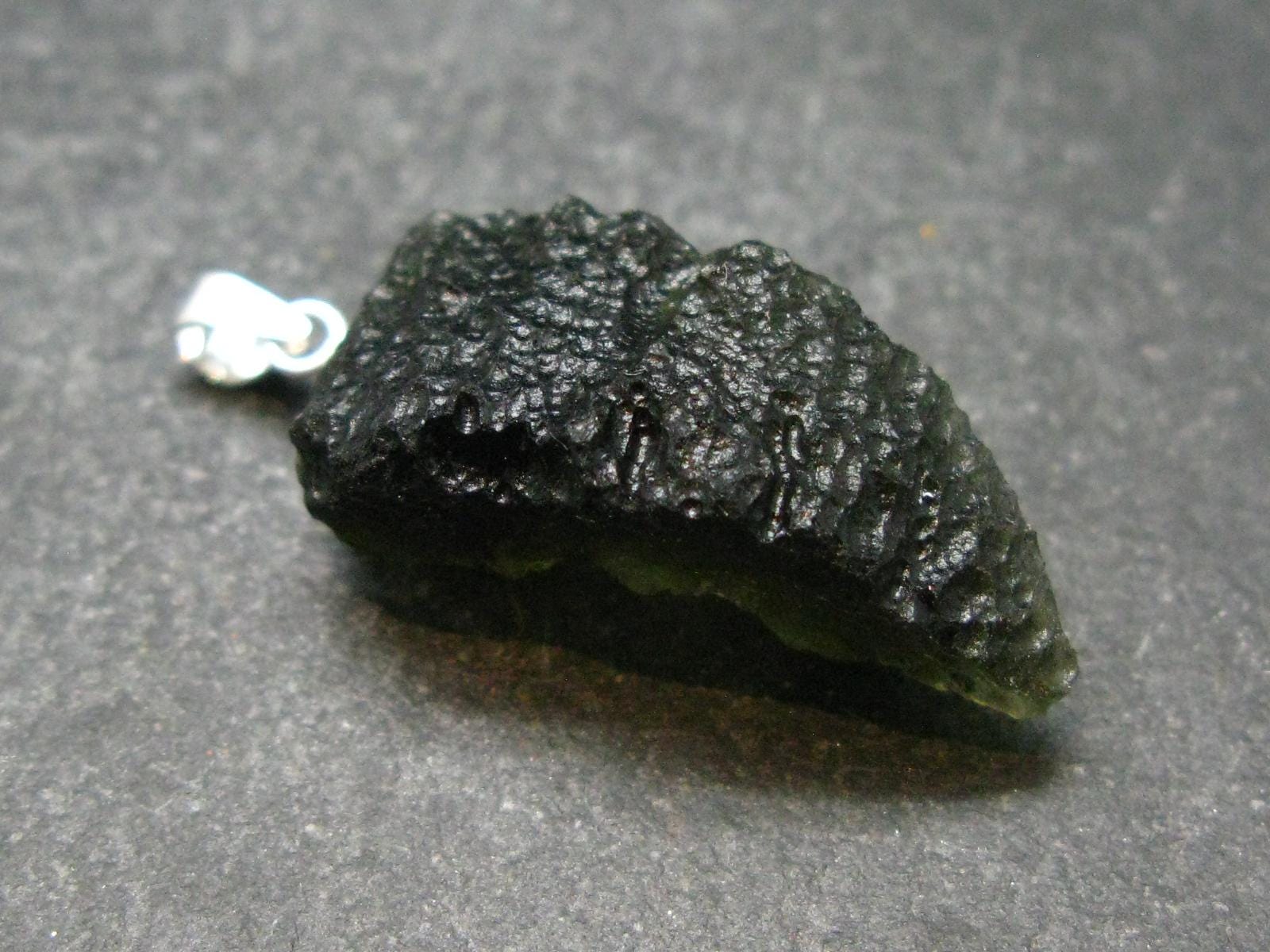 You are bidding on a very nice genuine Moldavite silver pendant. Stone is 2.7 cm long.