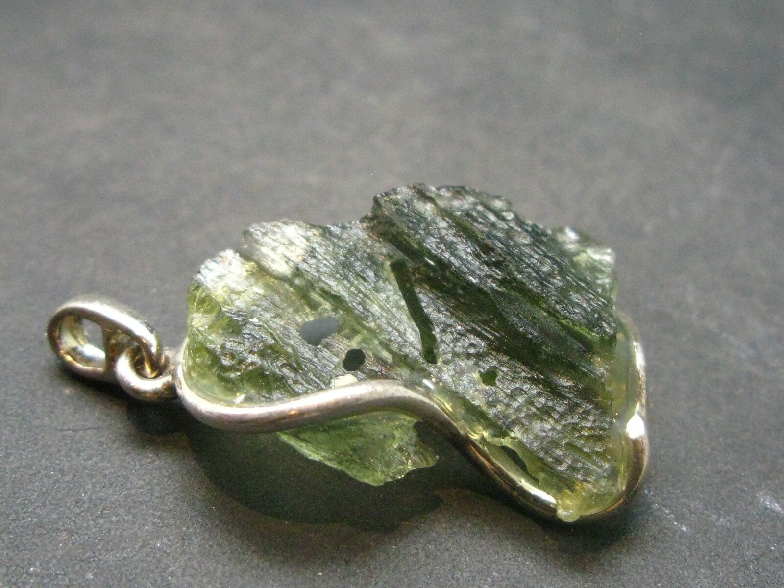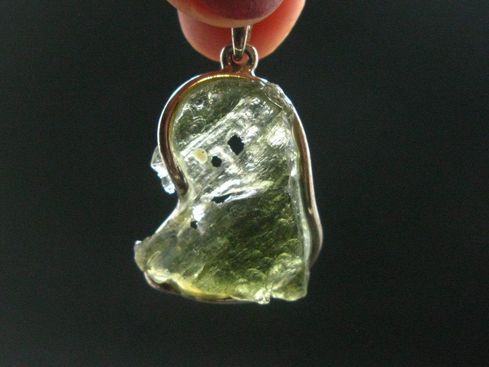 Moldavite Tektite Silver Pendant from Czech Republic - 1.4" - 5.34 Grams