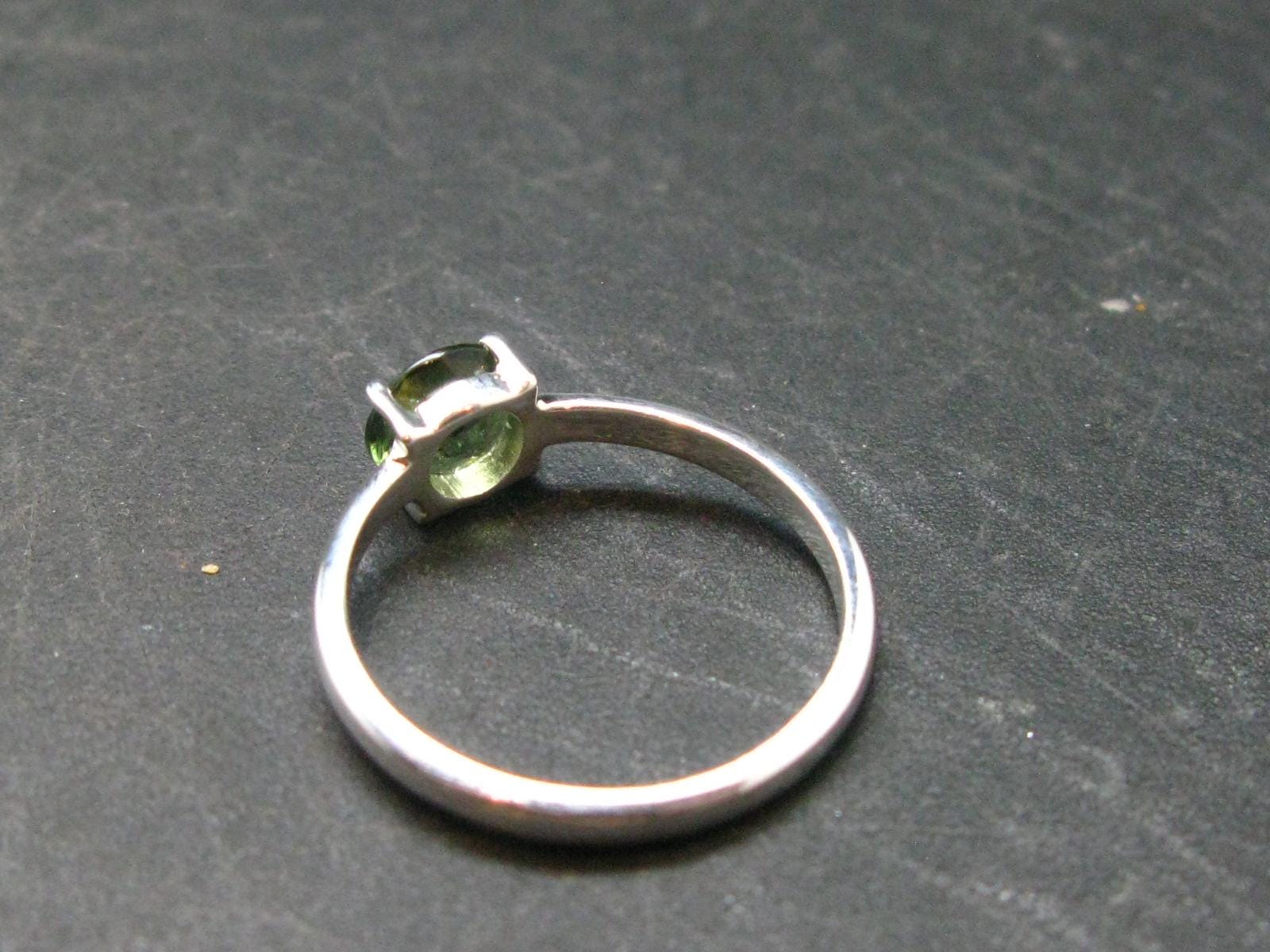 Moldavite Tektite Silver Ring from Czech Republic - Size 8 - 1.78 Grams