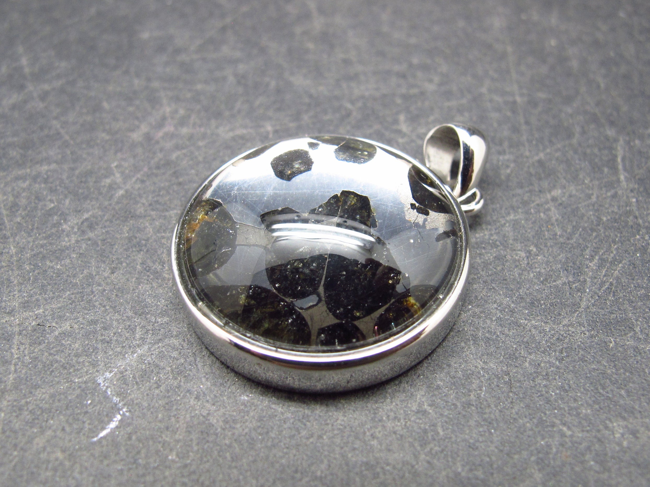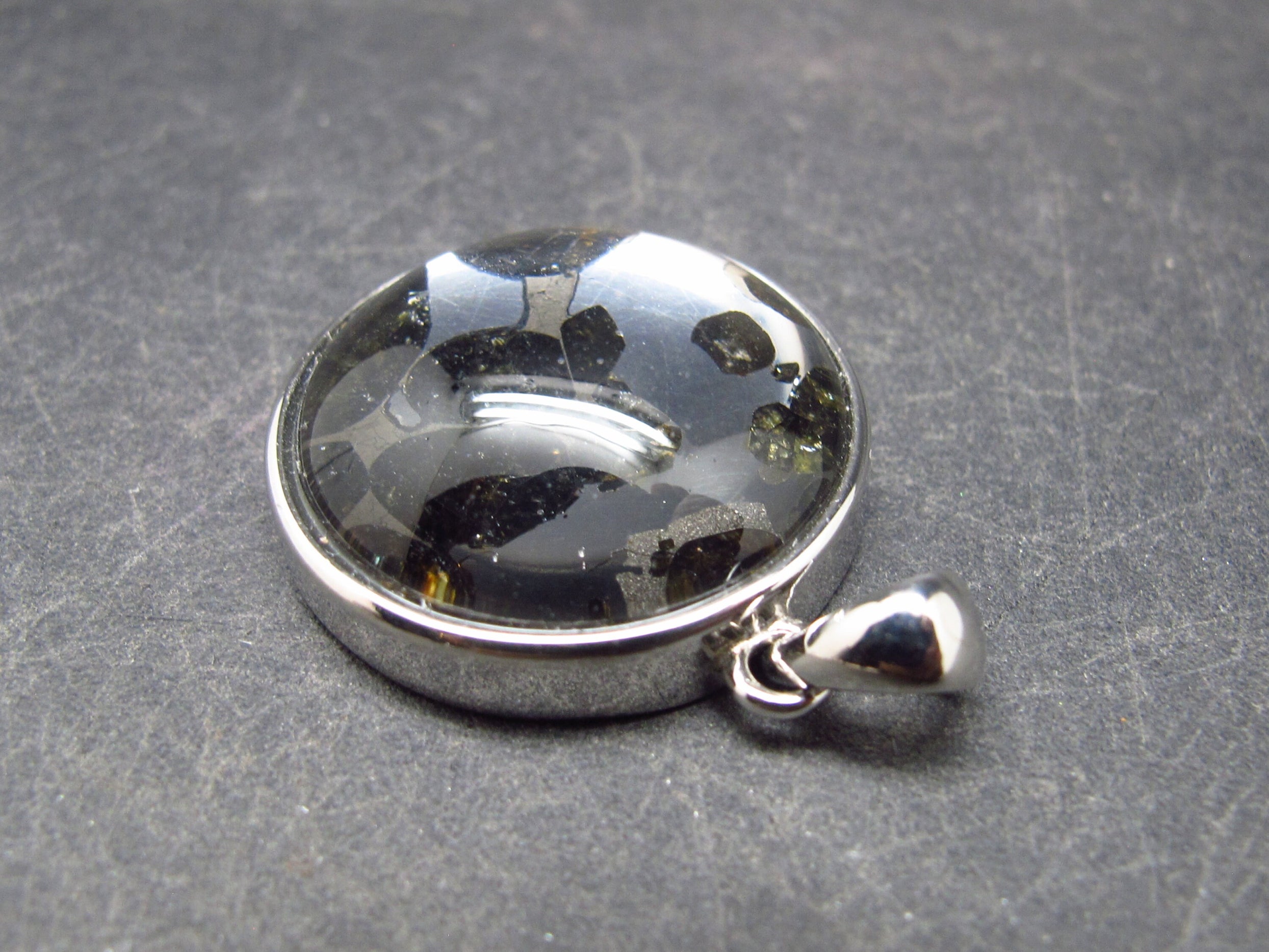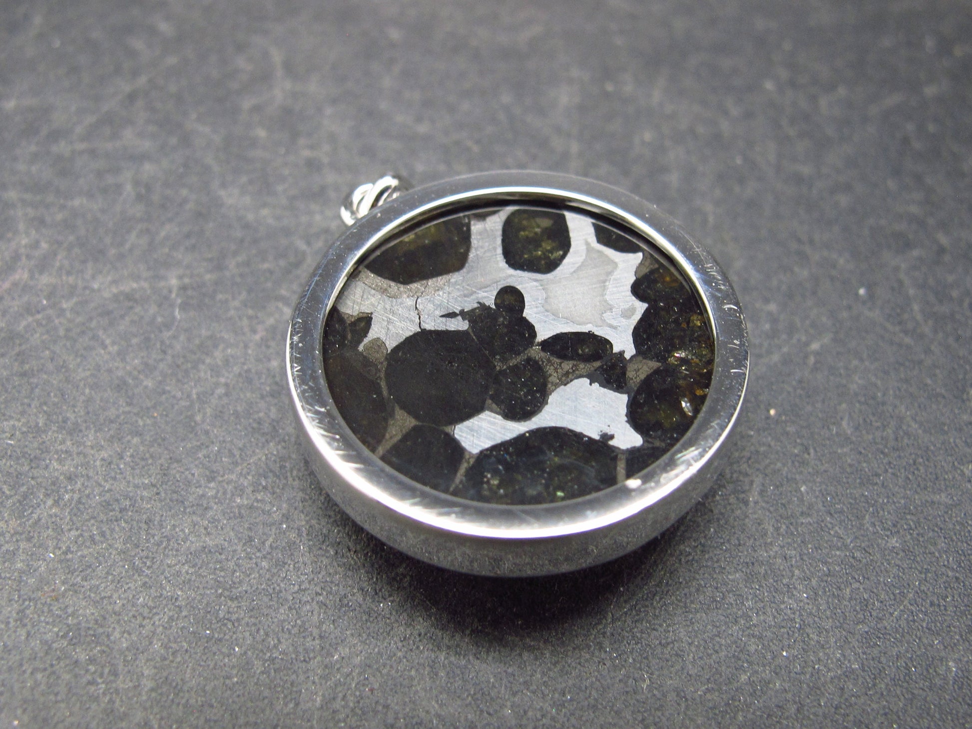 Rare Brahin Meteorite Slice With Olivine Pallasite Silver Pendant from Belarus - 1.2" - 7.5 Grams
