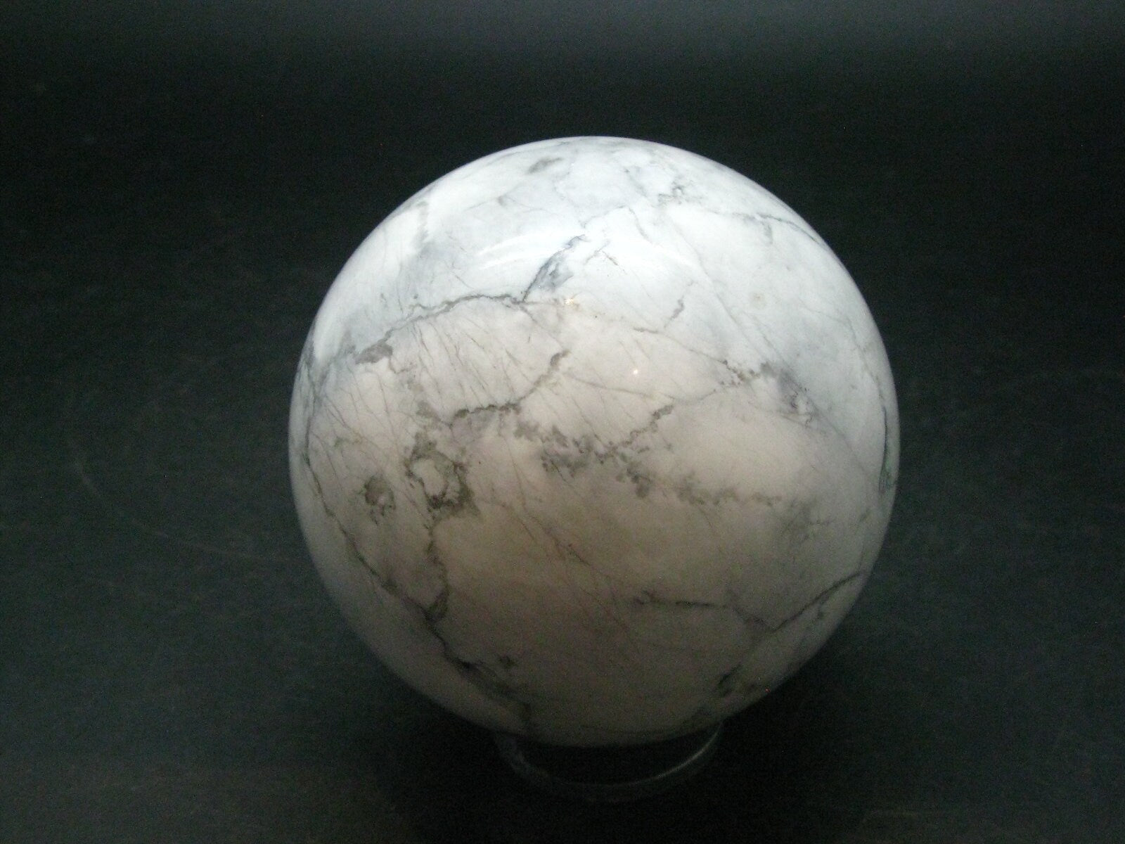 This is a large white Howlite Sphere with grey veins from South Africa.